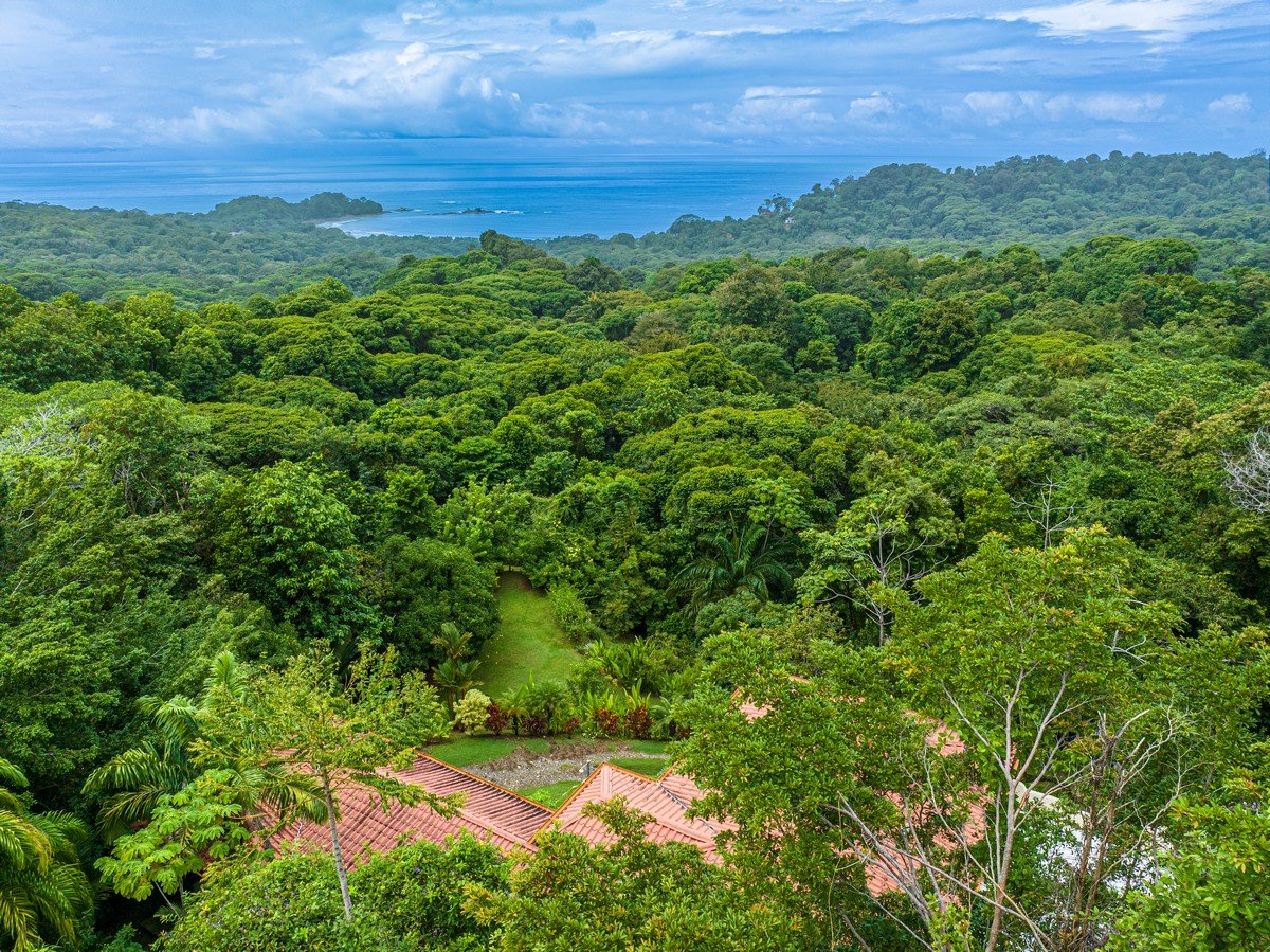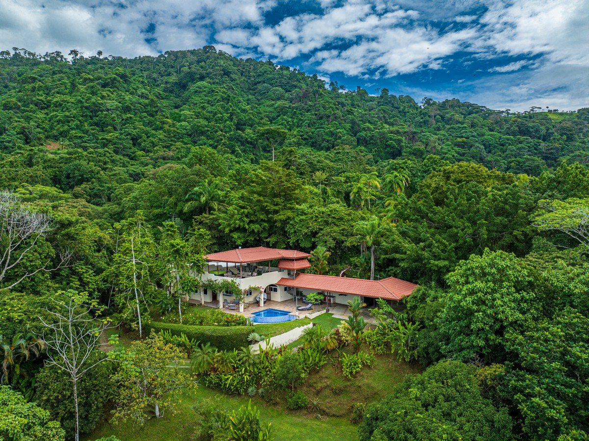 Tucked away on 5 pristine acres (2.5 hectares) in the lush hills of Dominicalito, this beautifully remodeled 3-bedroom, 2-bath home offers breathtaking ocean views, ultimate privacy, and modern comforts in a rare jungle setting. Surrounded by ancient jungle, mature mango, avocado, and lime trees, this is true Costa Rica living at its finest—secluded, peaceful, and deeply connected to nature.