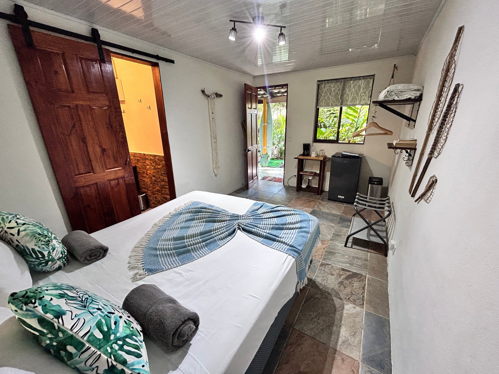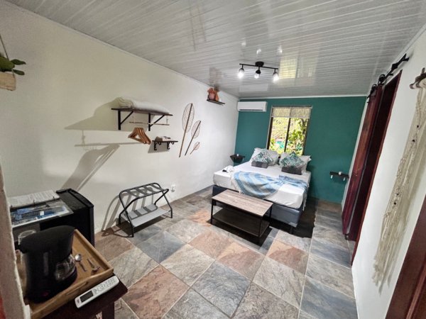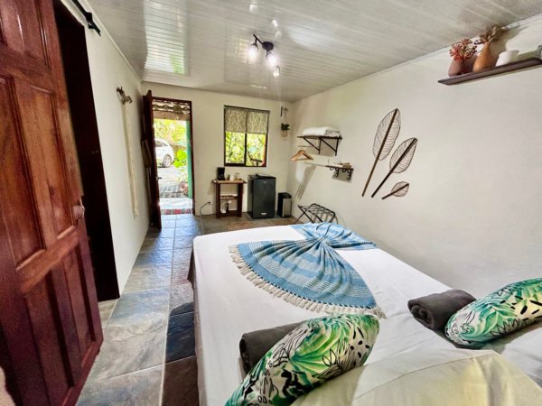Next to the restaurant are four beautifully decorated one-bedroom cabins, designed with a relaxed tropical style that fits perfectly with the natural atmosphere of Dominical.