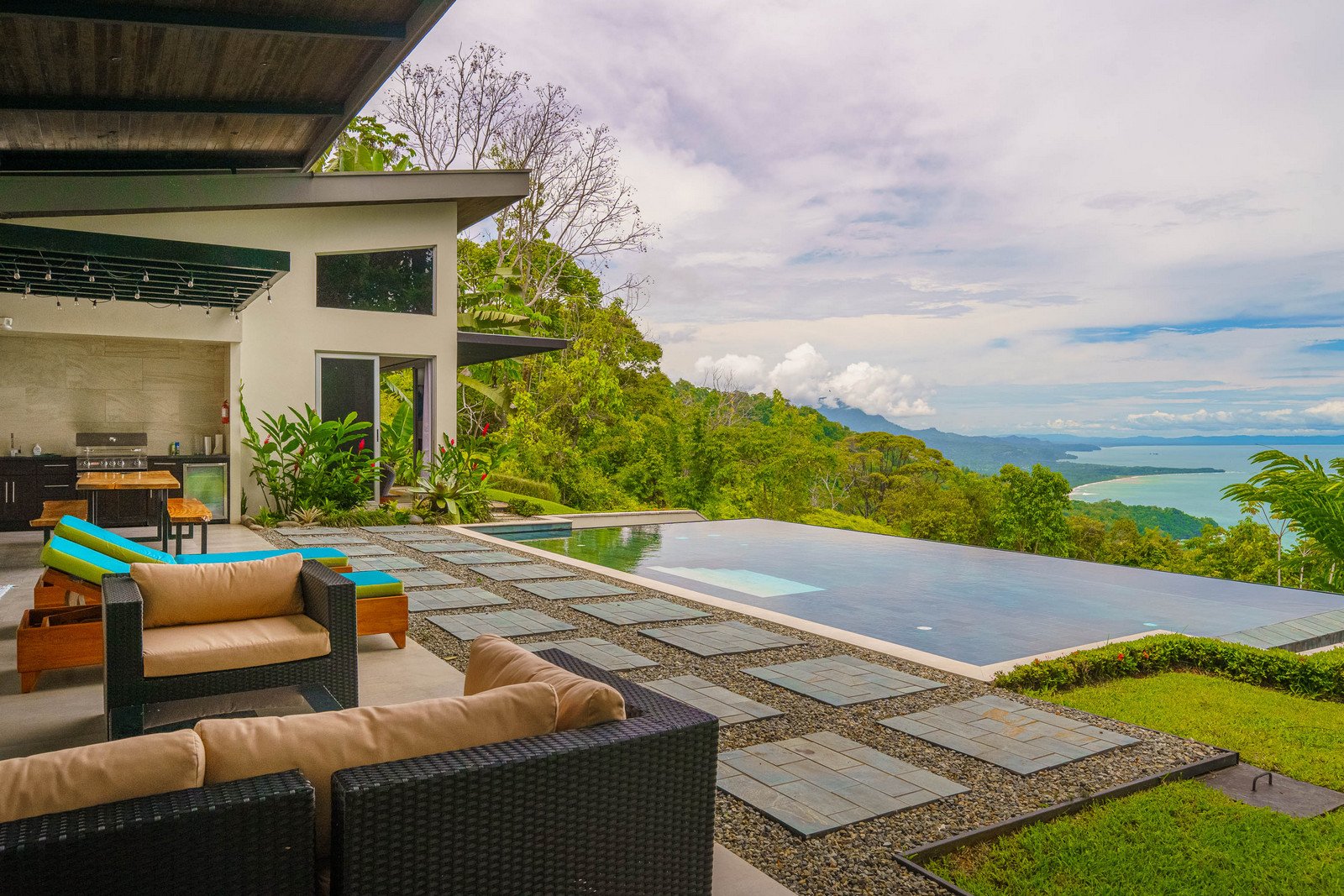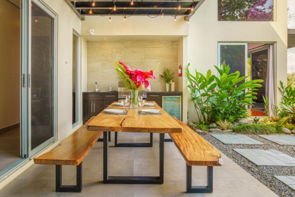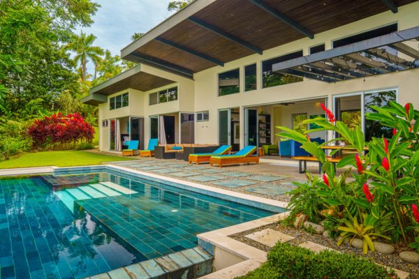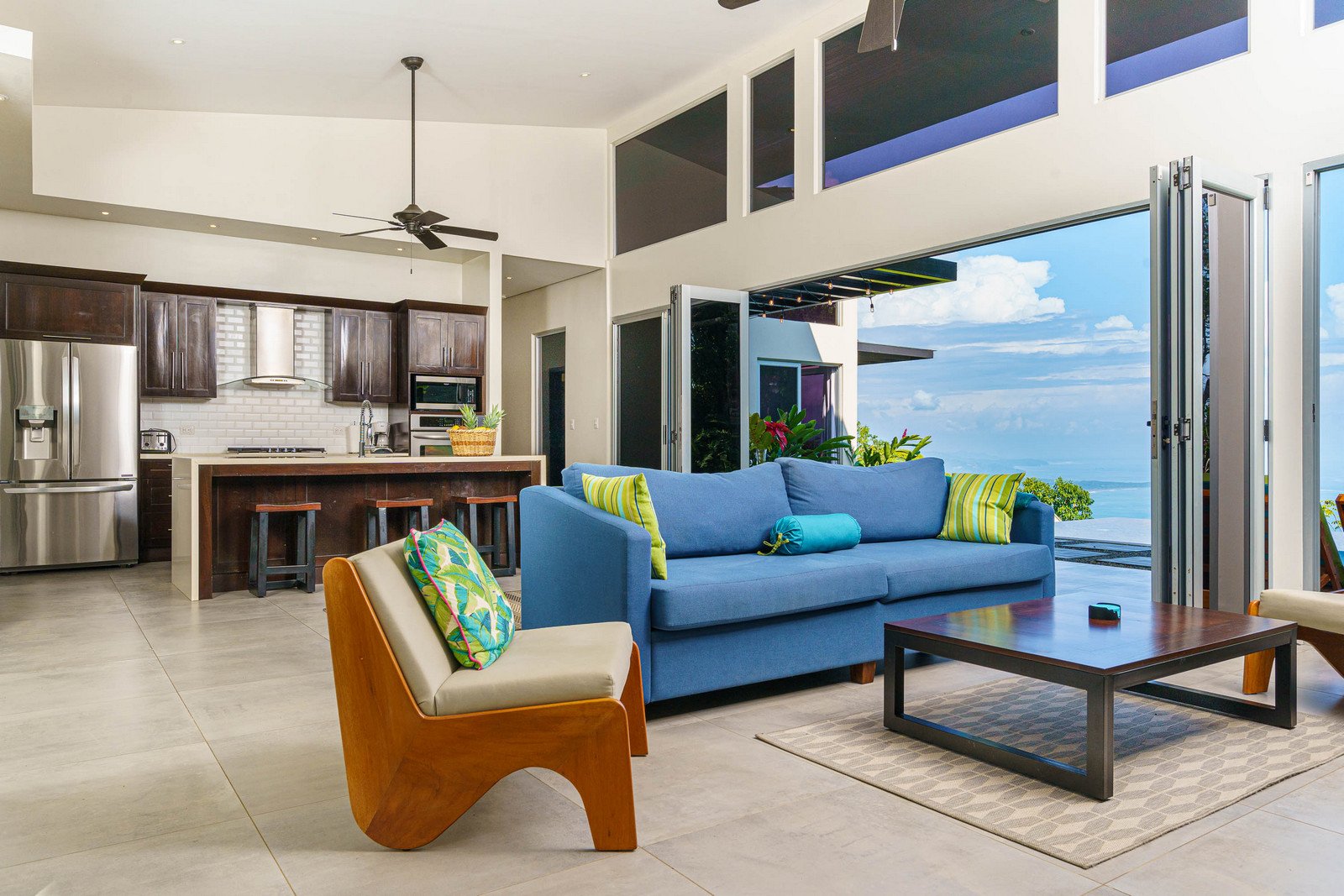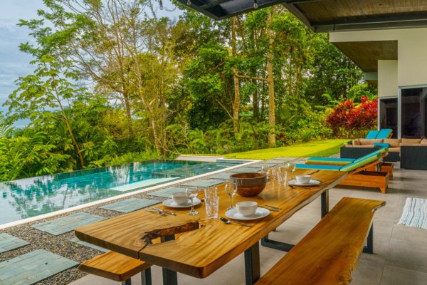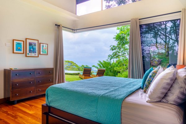 Crafted with warm teak flooring, natural stone accents, and sleek modern lines, this home blends sophisticated elegance with the raw beauty of nature. Expansive open-air living areas seamlessly flow into the infinity pool and lush gardens, where Costa Rica’s vibrant wildlife can be seen daily.