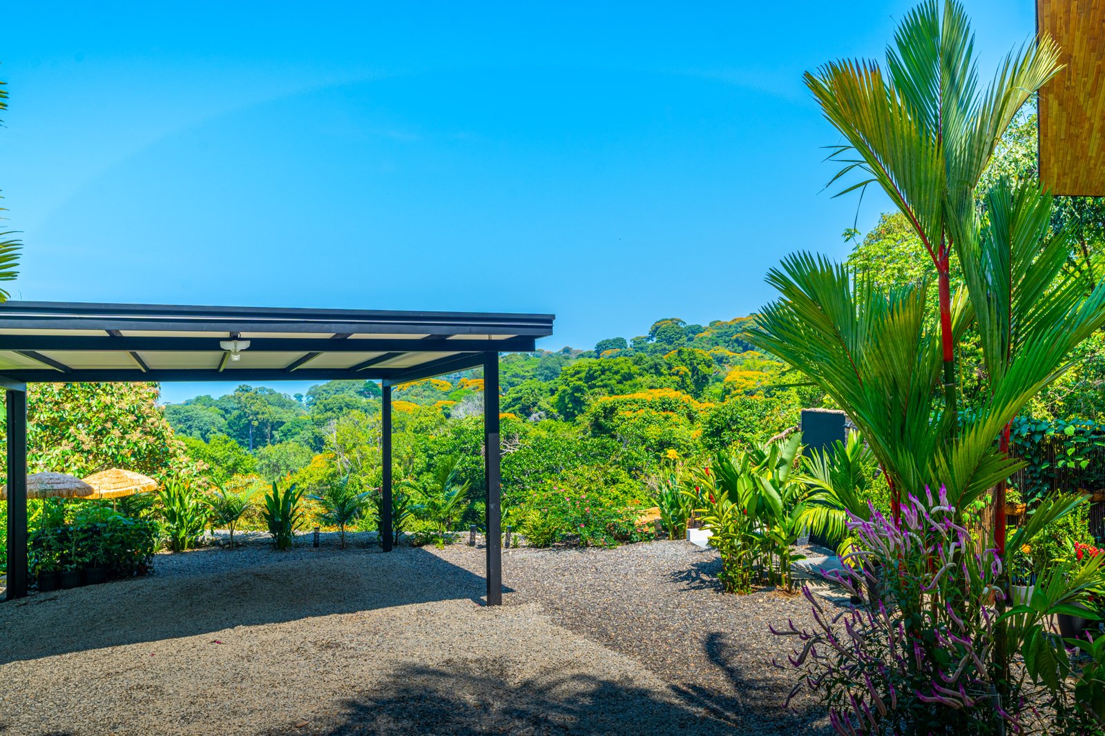 Nestled in the exclusive Escaleras – Terrazas gated enclave above Dominicalito, this architect-designed 3-bedroom, 2.5-bathroom home offers a harmonious blend of luxury, privacy, and natural beauty. Situated just 3 km from the coastal road at an elevation of 1,000 feet, the property enjoys refreshing mountain and ocean breezes, providing a comfortable climate year-round, and soothing sounds from the creek bordering the property, and often, sounds of the waves crashing on the rocks below.
