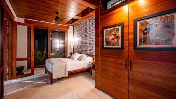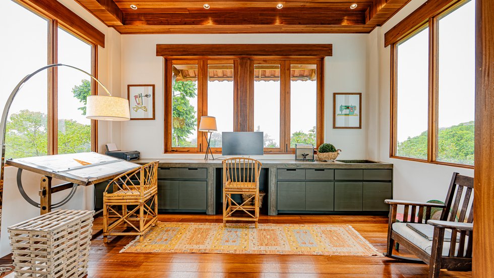 The residence features 2 bedrooms, 2 baths, a private office, and custom furniture throughout, reflecting the meticulous taste of an architect/owner, who is experienced in climate appropriate solutions. Enjoy ocean views from the second floor and rooftop while the backdrop of the Chirripo and Talamanca mountain ranges provides an awe-inspiring panorama from the patios and dining areas.