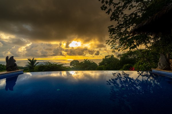 Set on a sprawling 5-acre estate, Castillo Puesta del Sol is perched high above the turquoise waters of Dominicalito Bay. From this privileged vantage point, you are treated to uninterrupted ocean views that stretch as far as the eye can see, from the dramatic coastline to the distant horizon where the sky meets the sea. Here, every evening, the sun dips into the ocean, painting the sky with hues of orange, pink, and gold, a nightly spectacle that is yours to savor in complete privacy.