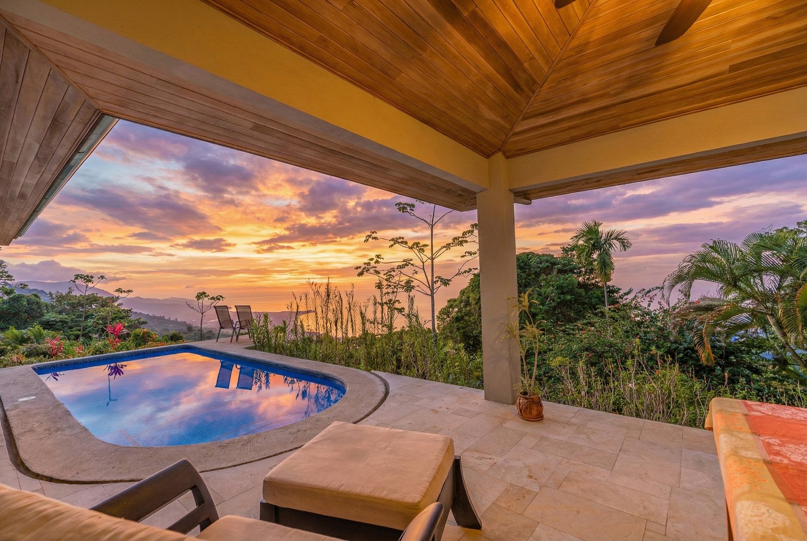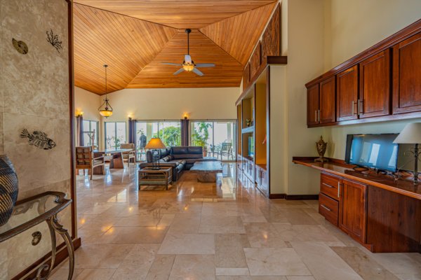 From the moment you enter the long, private driveway, the sense of scale and exclusivity is unmistakable. The property unfolds into sweeping, unobstructed Pacific Ocean views, centered on the legendary Whale’s Tail, with sightlines extending to Caño Island, Ballena Rock, the Three Sisters, Corcovado Peninsula, and the Tortuga Delta, all framed by dramatic sunset colors and cooling ocean breezes.