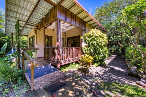 The 2 Casitas one of which has handicap ramp access; which is required by Costa Rican law for an operating commercial entity. Each casita has its own kitchen and living room are plus covered porch. Great for short term nightly rentals or long-term monthly rentals.