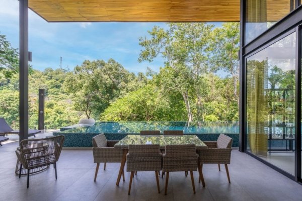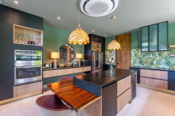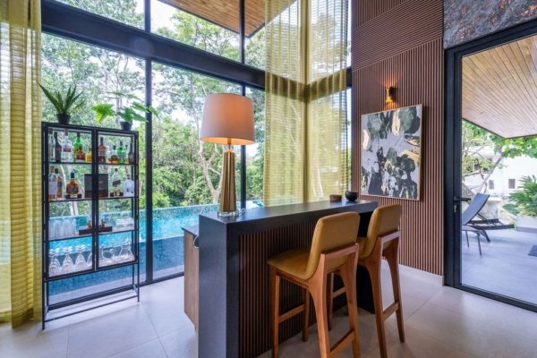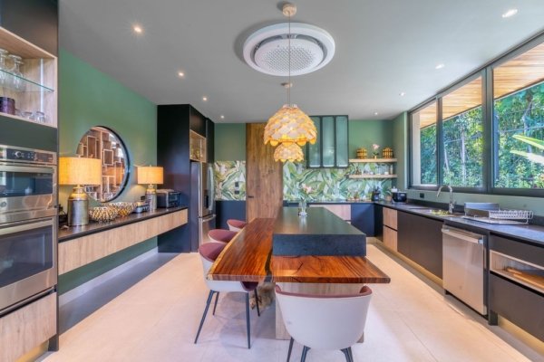 The pièce de résistance of this incredible property is undoubtedly the grand infinity pool. Overlooking the lush jungle, this serene oasis offers breathtaking views day and night. Whether hosting a lively gathering or enjoying a quiet evening swim, the infinity pool with its tasteful aquamarine coloring serves as the perfect backdrop for making unforgettable memories with friends and family.