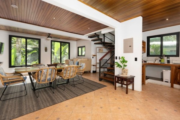Located in the heart of Manuel Antonio along a tranquil small creek with tons of wildlife daily such as monkeys, parrots, pasotes, and more. Casa Pura Vida is a great rental property, but also could be used as a permanent residence. Easy access close to everything such as restaurants, shops, beaches, the Manuel Antonio National Park, and the Pez Vela Marina in Quepos.