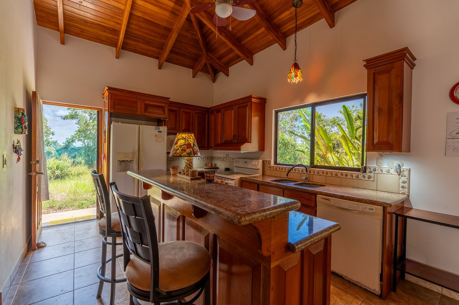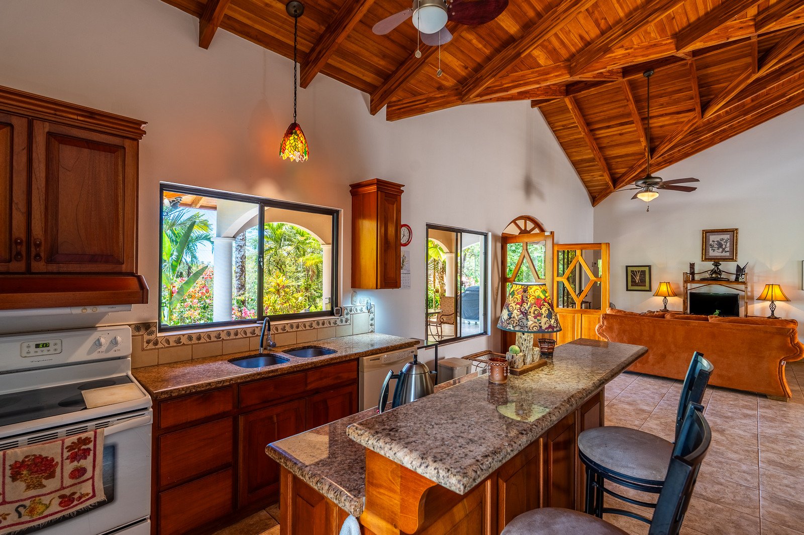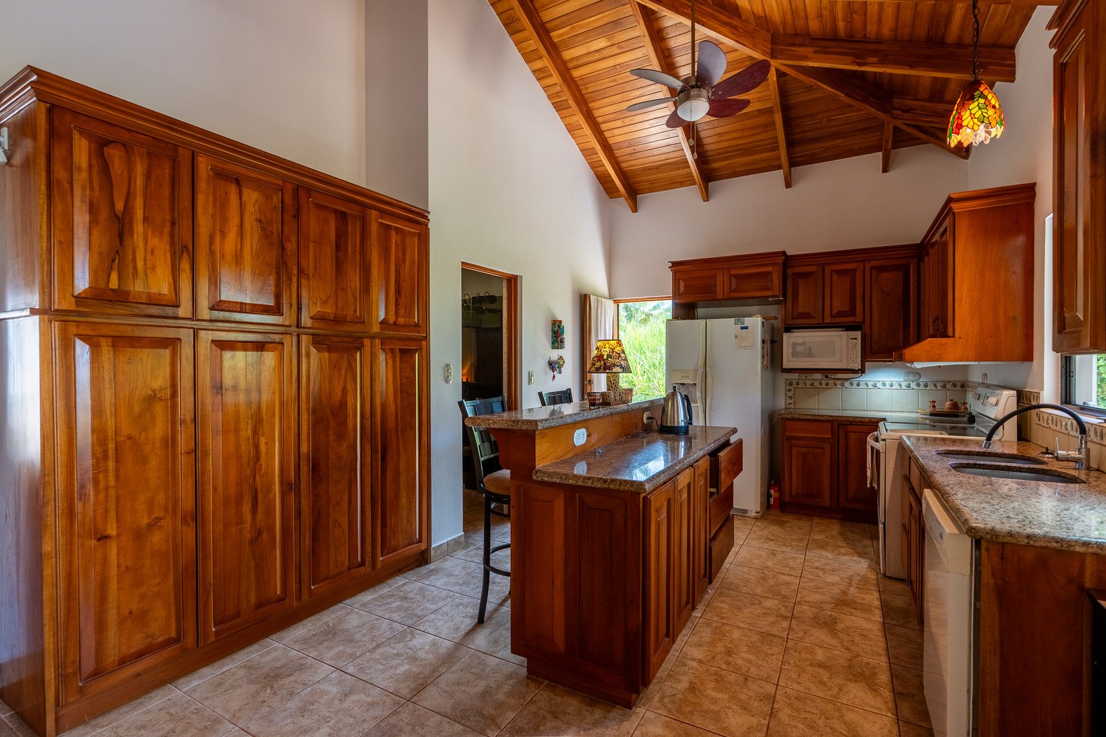 • Stunning vaulted teak ceilings and custom woodwork