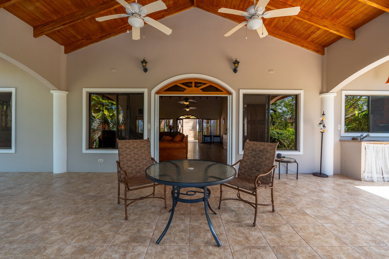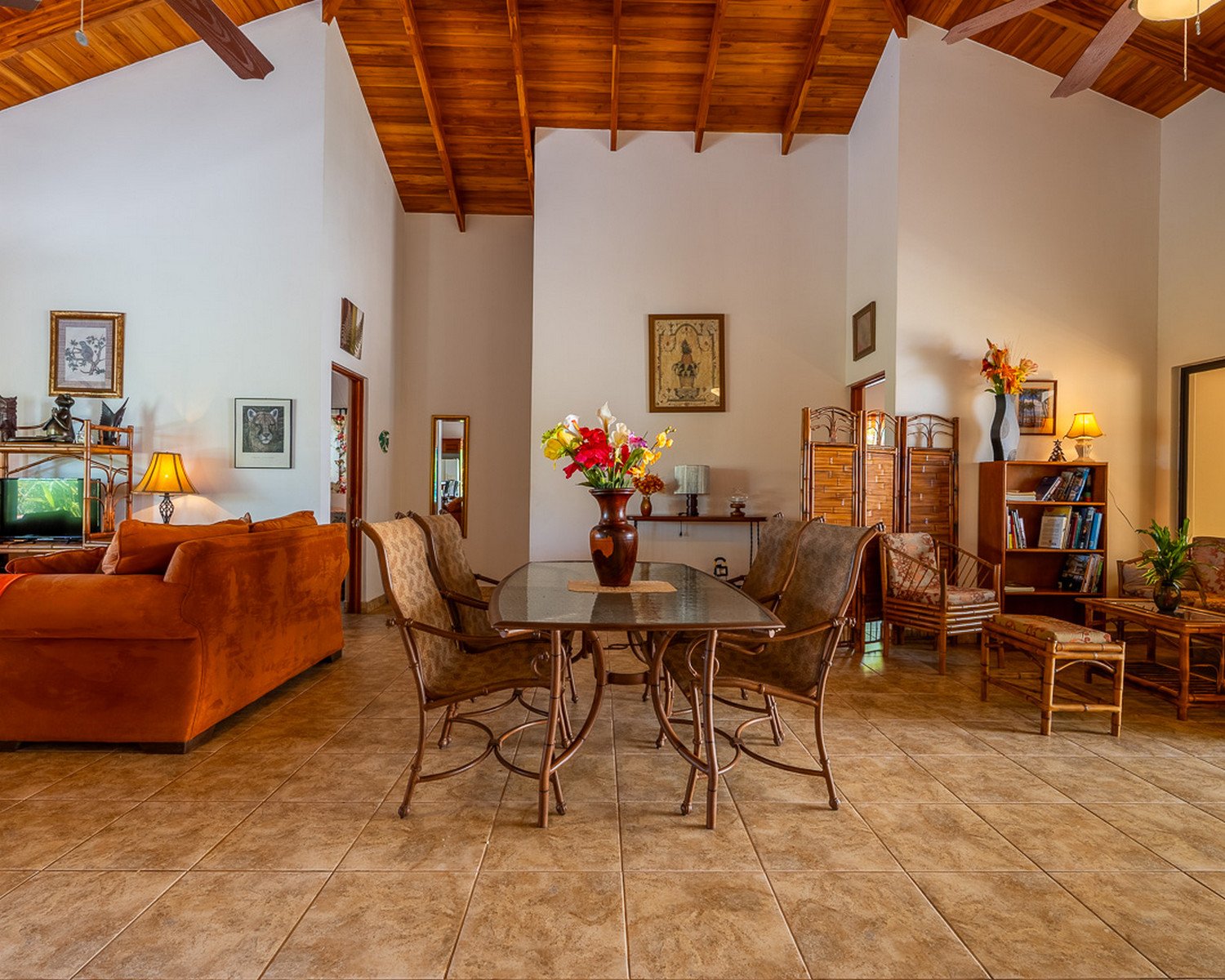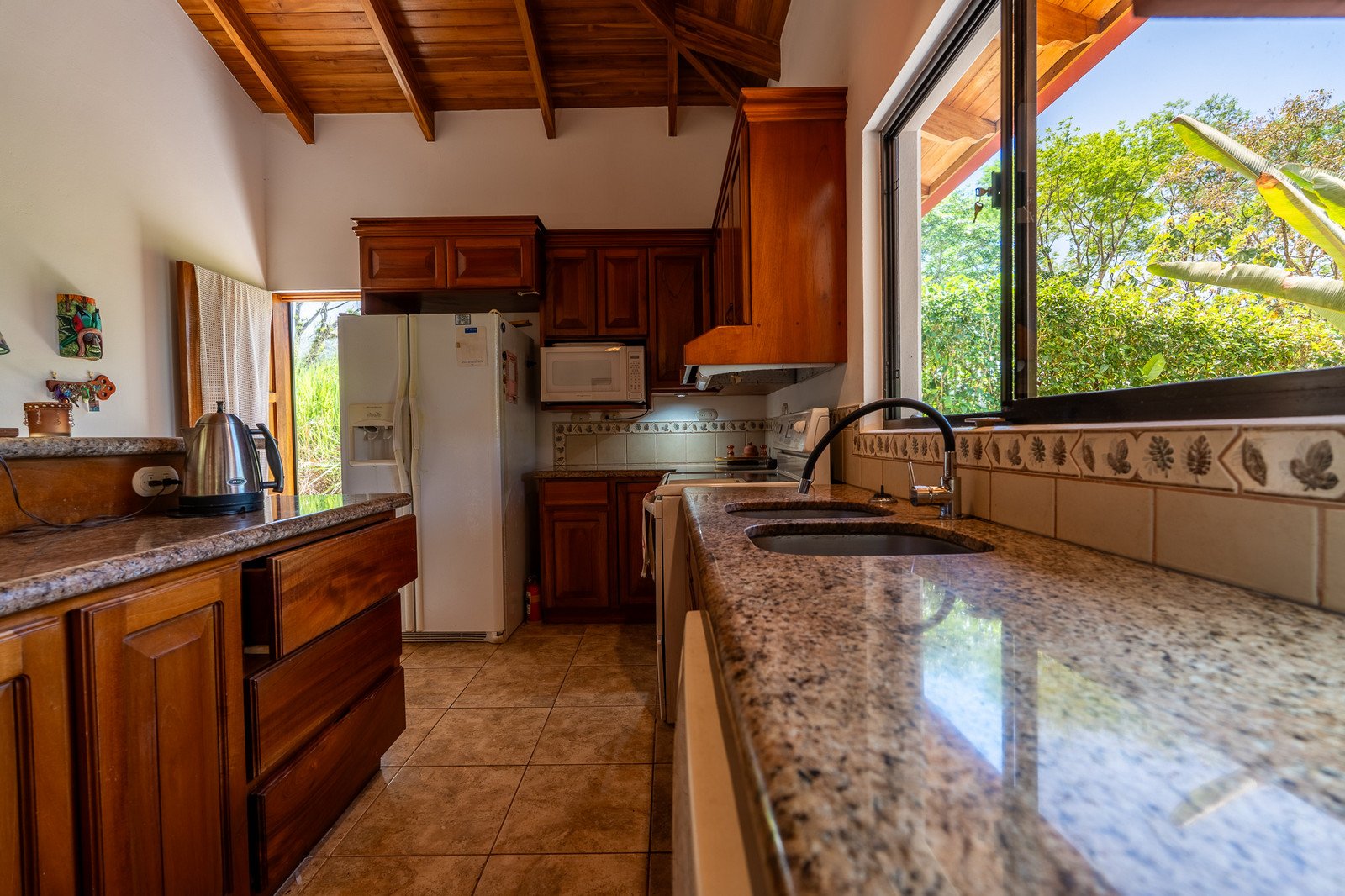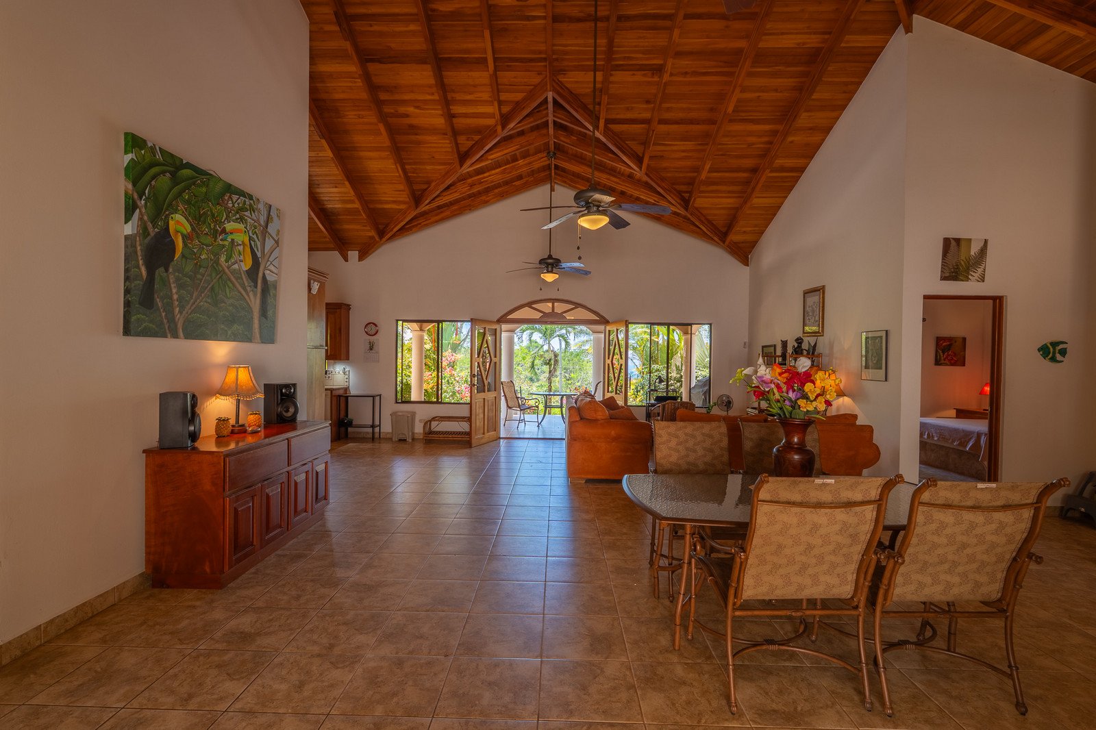 • Stunning vaulted teak ceilings and custom woodwork