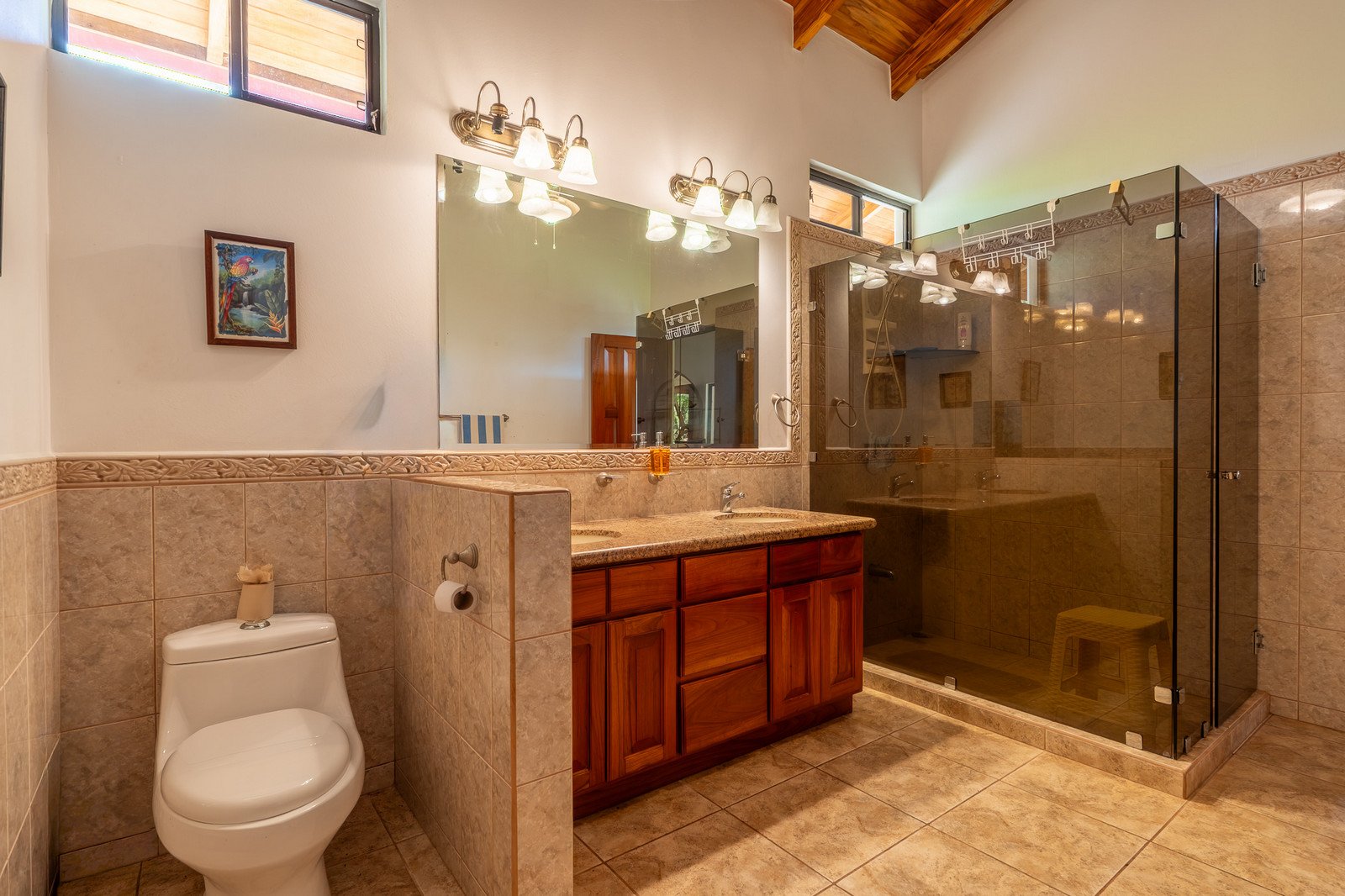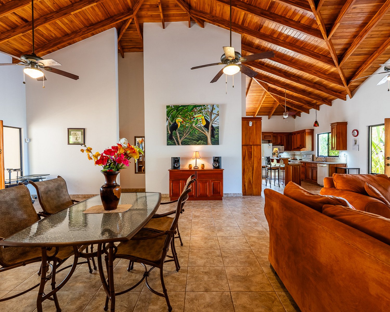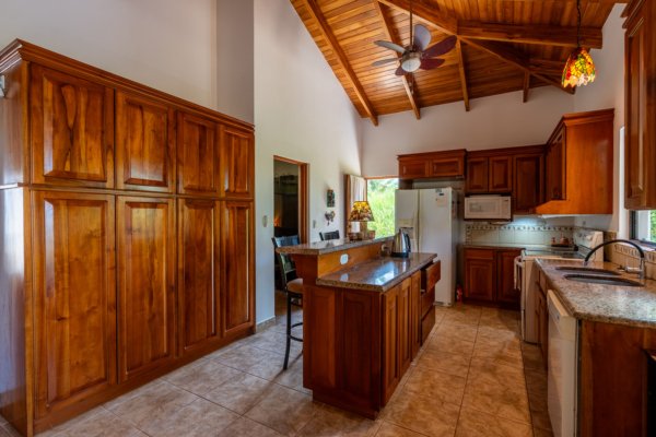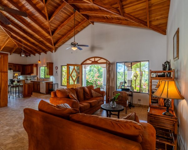 Discover the tranquility of this incredibly well-built home in Phase 6 of Ojochal. Nestled in the mountains just 8 minutes above the village, this spacious jungle escape offers privacy, refreshing mountain breezes, and lush green surroundings — perfectly designed for peaceful living and effortless entertaining. Built in 2008 and maintained in amazing condition, this home showcases stunning vaulted teak ceilings and exquisite custom woodwork throughout, creating a warm yet elegant tropical atmosphere. Property Highlights