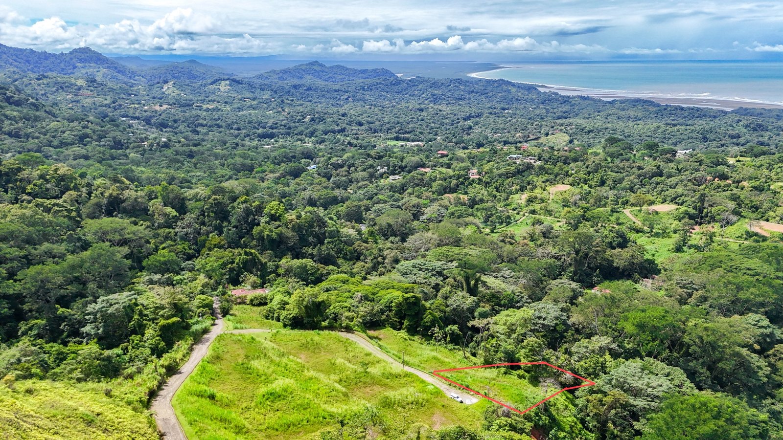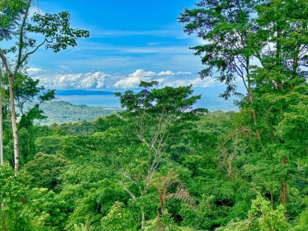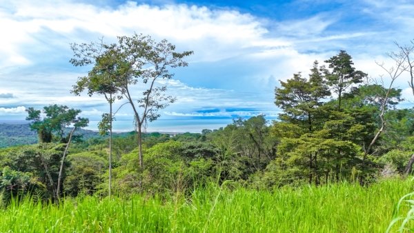 Arguably, the selling point of this 873sqm lot is its elevated location. The land towers above other Phase 6 community properties and offers spectacular vistas. Whitewater Pacific shores, Isla Garza, Térraba River delta, Caño Island, and the wilds of Osa Peninsula & Corcovado National Park can be glimpsed from the property. Behind the land and all around, lush rainforests and thick canopies stretch for miles. The coastal mountains tower 1,000 meters or 3,300 feet above the surrounds – their nearly vertical slopes are covered with jungles and cloud forests. This is where the jaguars and tapirs roam. The green season brings cascading waterfalls, some hundreds of meters in height.