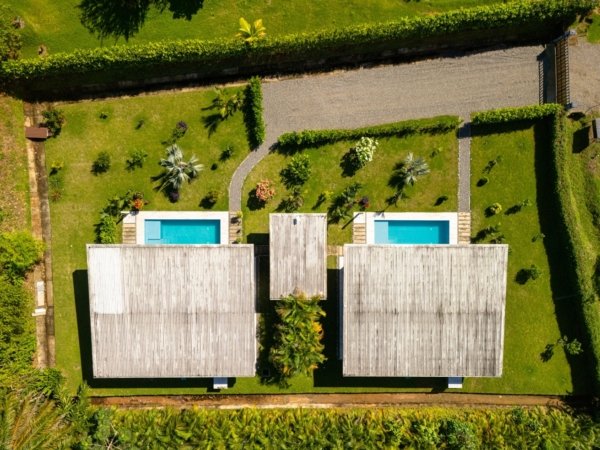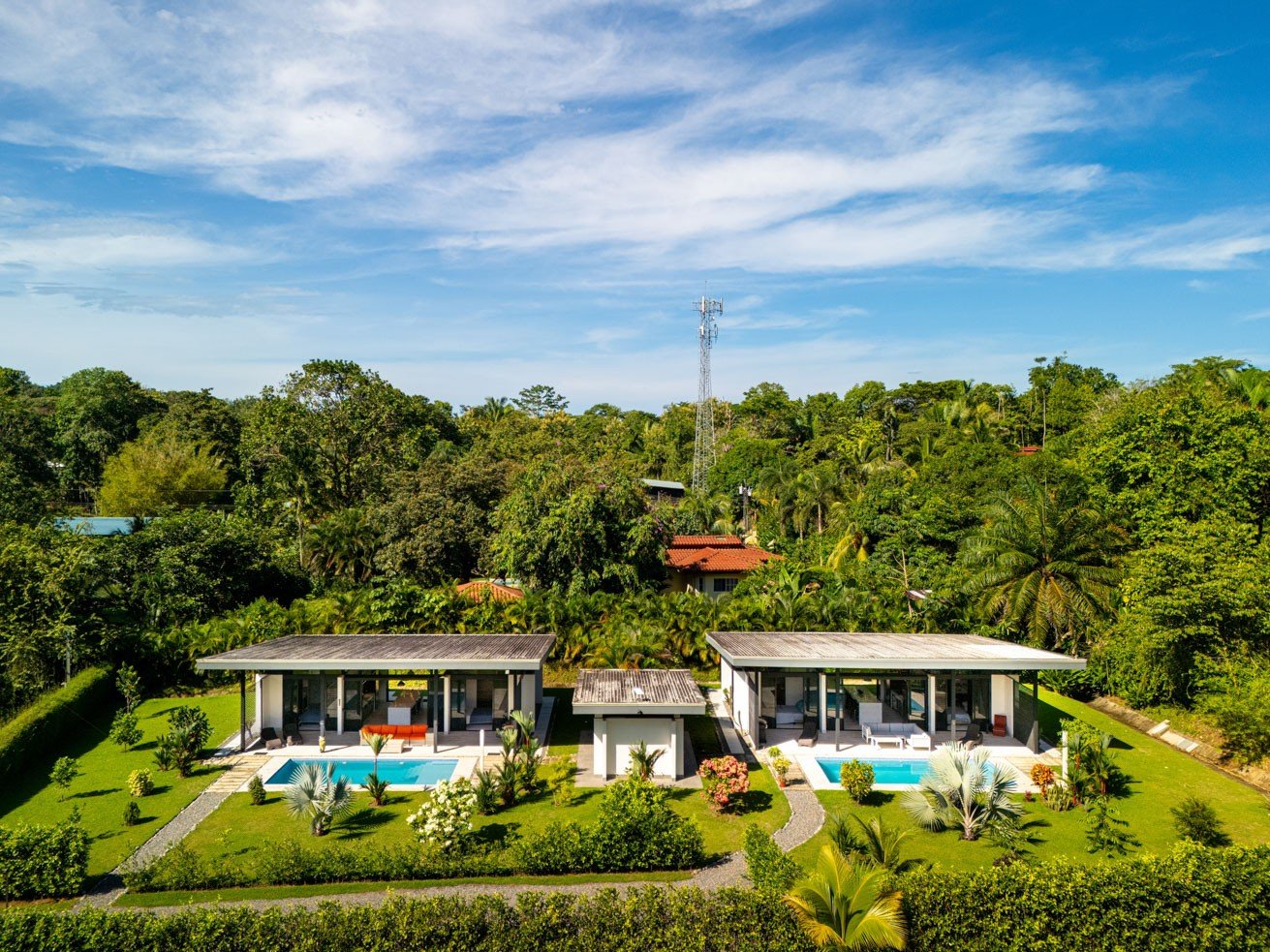 These two homes sit in the PERFECT location and are totally independent. The discerning buyer has many options: a purely residential estate in the style of a family compound or a main house plus a guest home, a mixed development with one residential house and one rental home, or a purely commercial enterprise with a 2-house resort. Each house includes a private swimming pool, private laundry facilities, a private outdoor half-bathroom in the pool area and, thanks to the construction layout and targeted landscaping, offers full privacy from both the other home and from the surrounding properties.