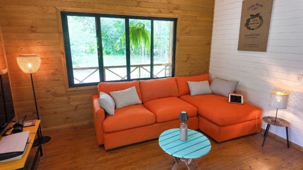 The owners have planted a tropical orchard – mango, avocado, cocoa, bananas, blackberry, lemon trees and pineapple plants are producing fresh, organic gifts of nature. Imagine waking up, stepping out into the tropical air and picking off fresh bananas or mangos for your morning shake, which you will enjoy by the burbling river. Paradise indeed.