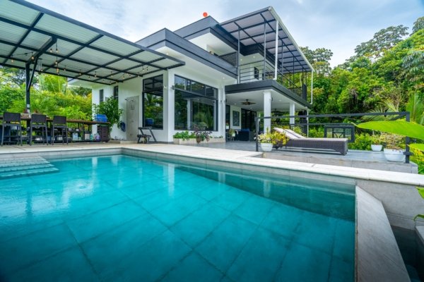 Situated in the tranquil mountains of Ojochal, this stunning modern home is truly a family sanctuary. A peaceful place where privacy, comfort, and the awe-inspiring beauty of the jungle rainforest come together in perfect harmony!