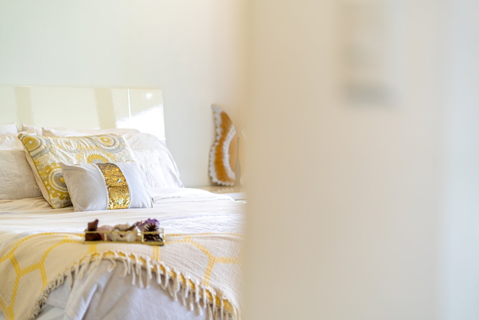 The main-level bedroom offers ample space for a king-size bed and built-in closets—a perfect couple’s retreat—while upstairs, two beautiful suites with walk-in closets and private balconies give children or guests their own special havens to grow, learn, and relax.