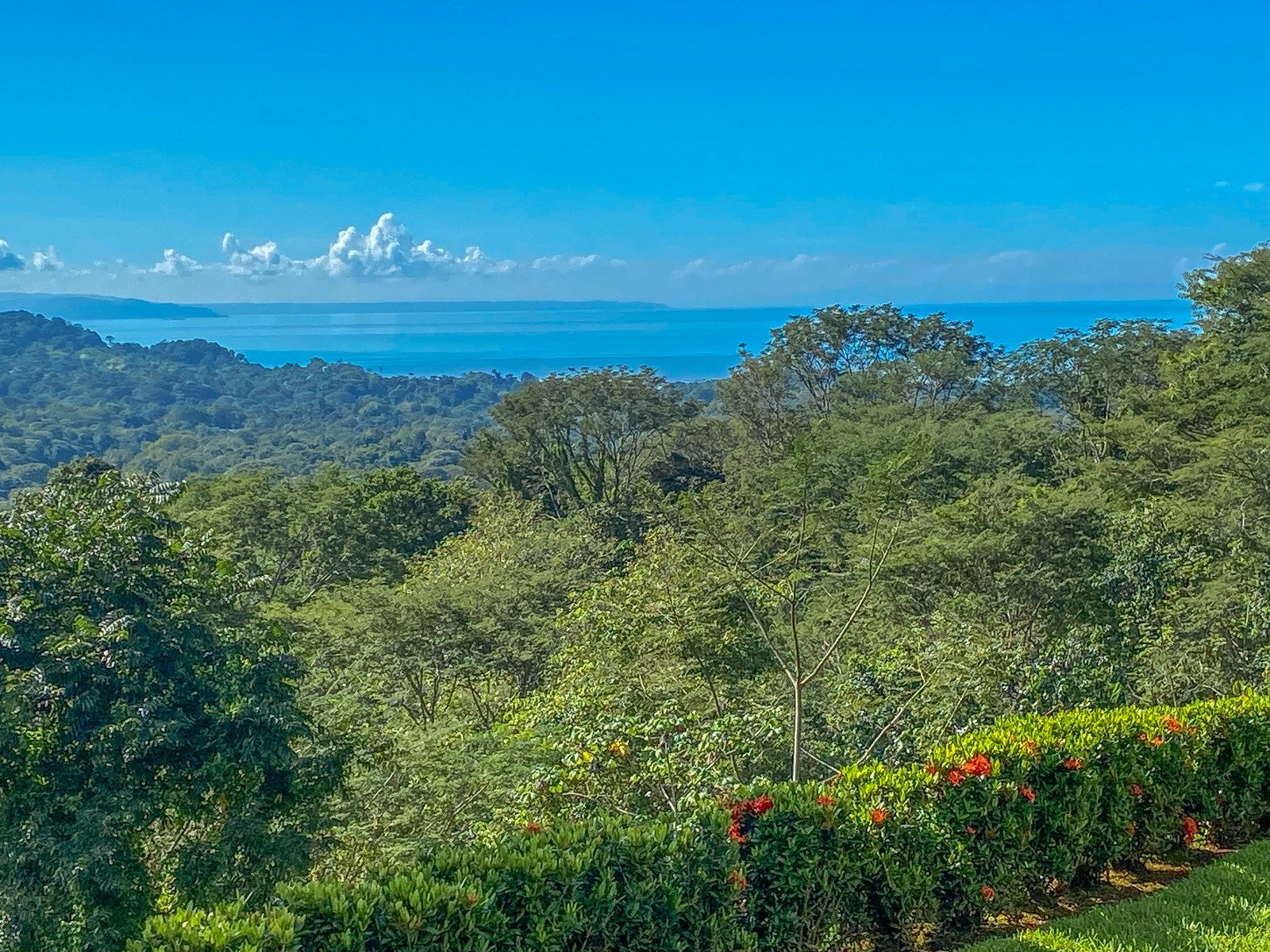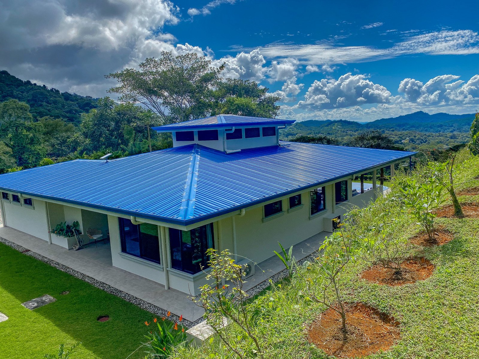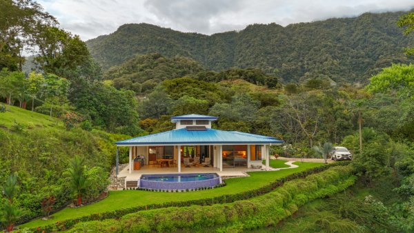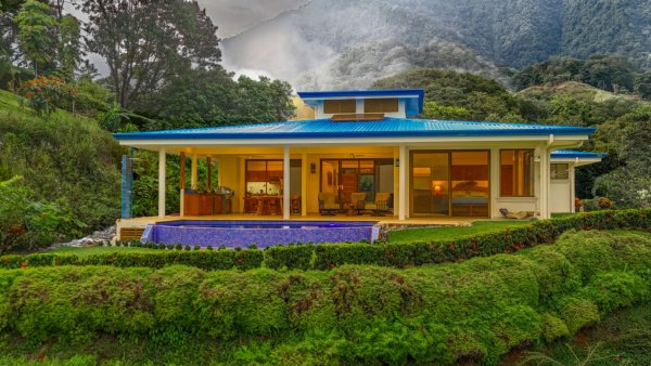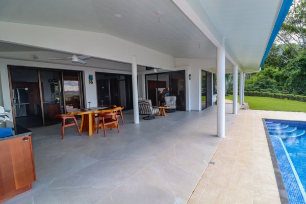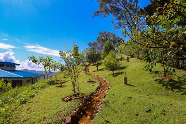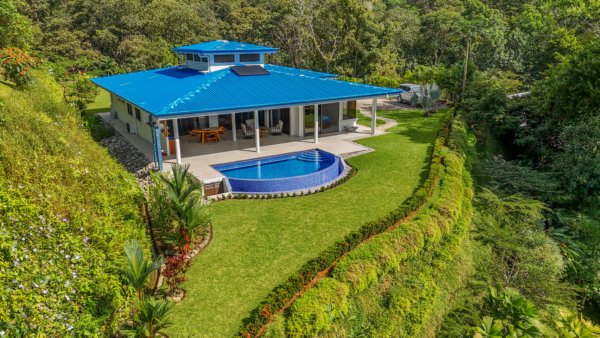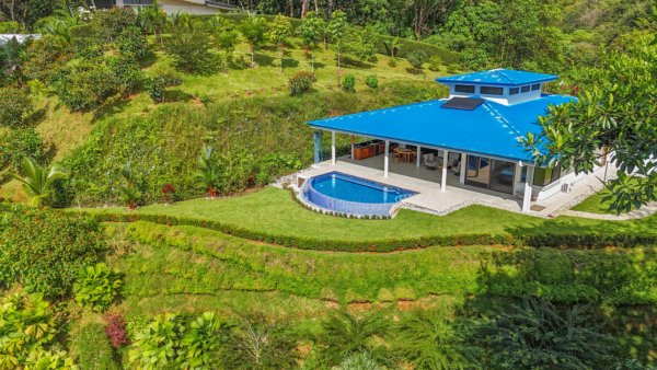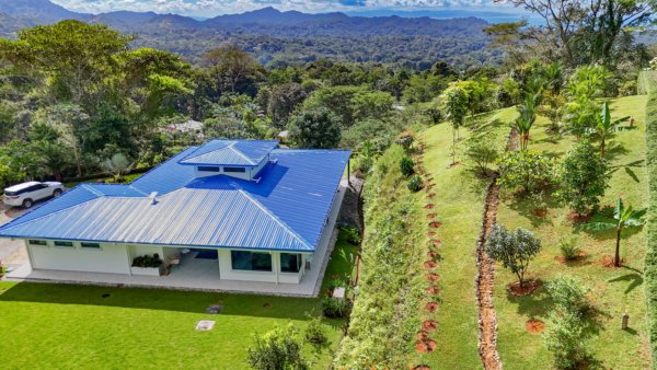 The property stretches across a hill which overlooks the surrounding mountains, valleys, jungles and the Pacific Ocean. Elevated 180 meters or 600 feet above the Pacific, the house benefits from a cooler climate, refreshing mountain breezes and, of course, spectacular views.