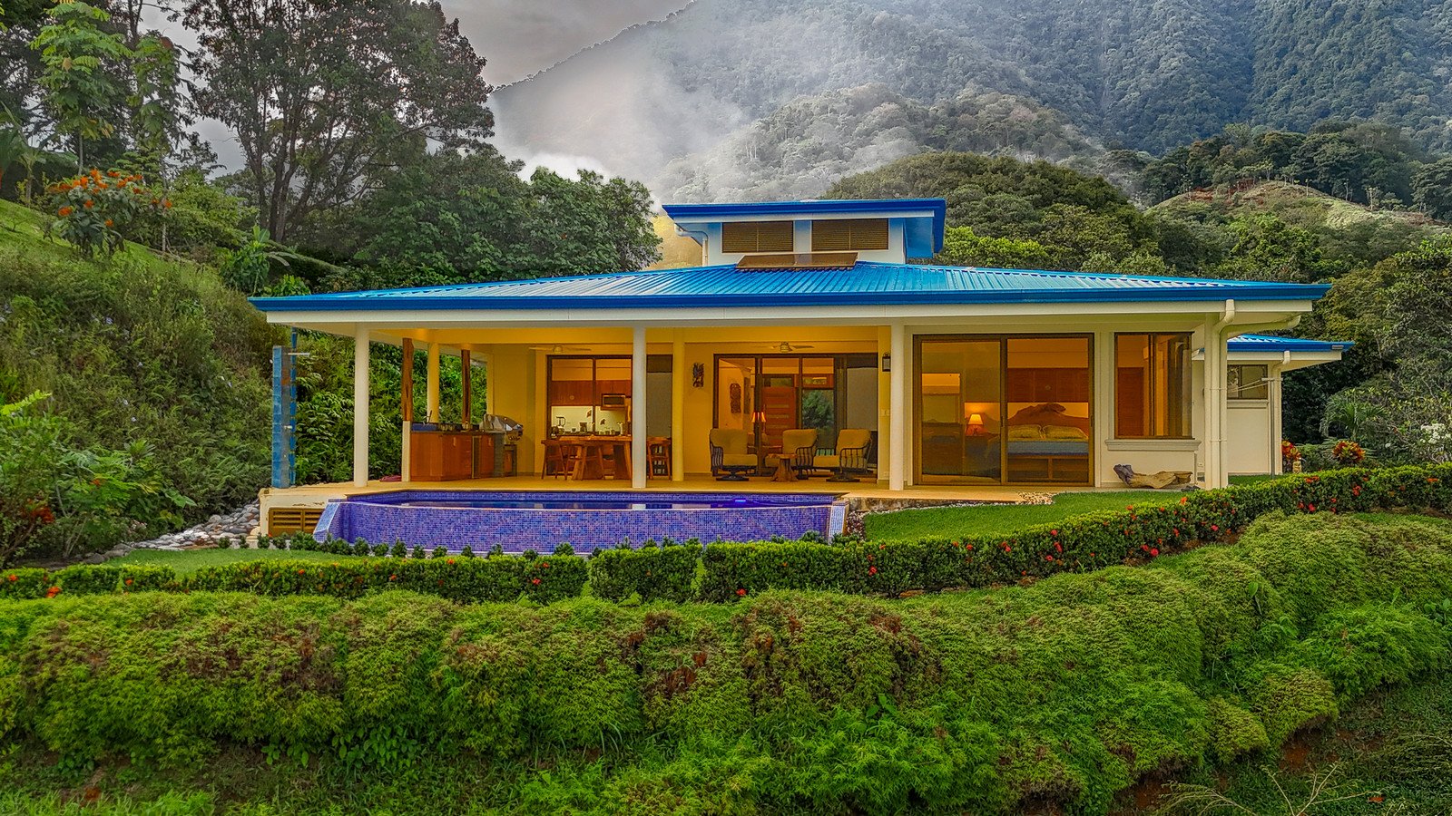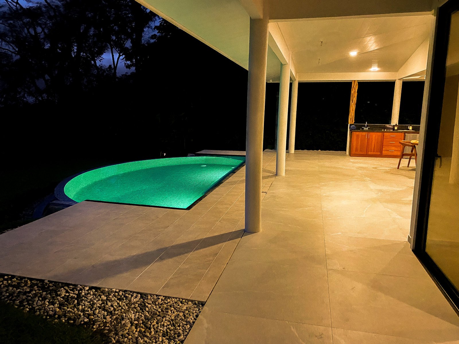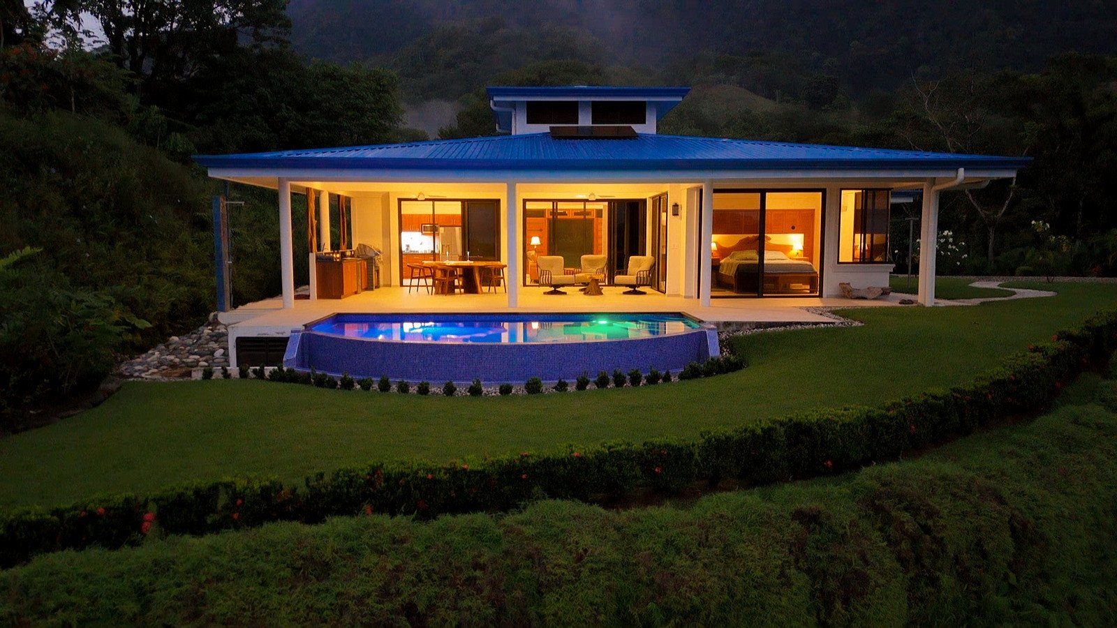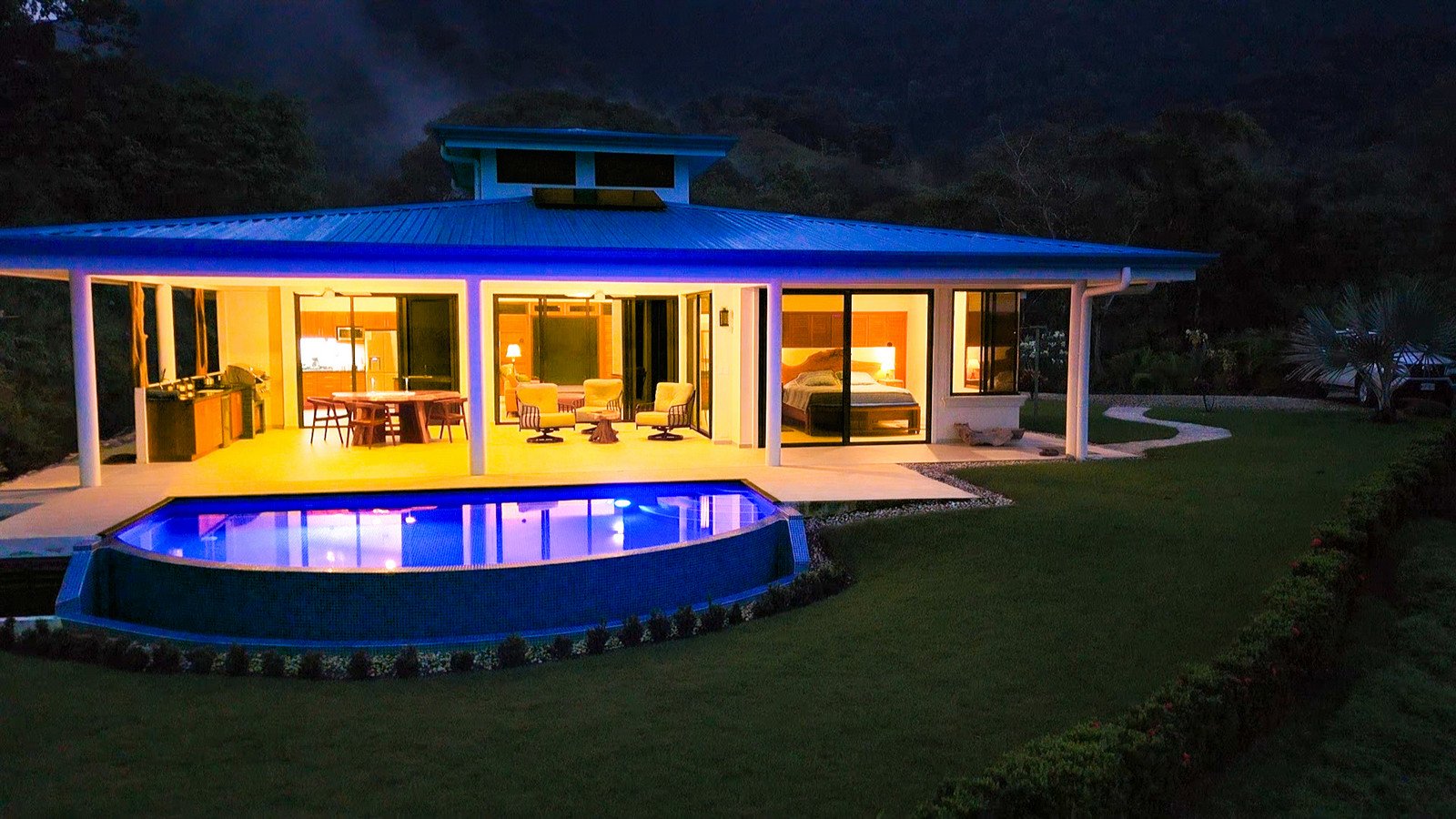 Just in front of the patio, the stunning LED-lit infinity pool looks onto the ocean, jungle & mountain views – making it a perfect hangout for enjoying the nightly sunset shows.