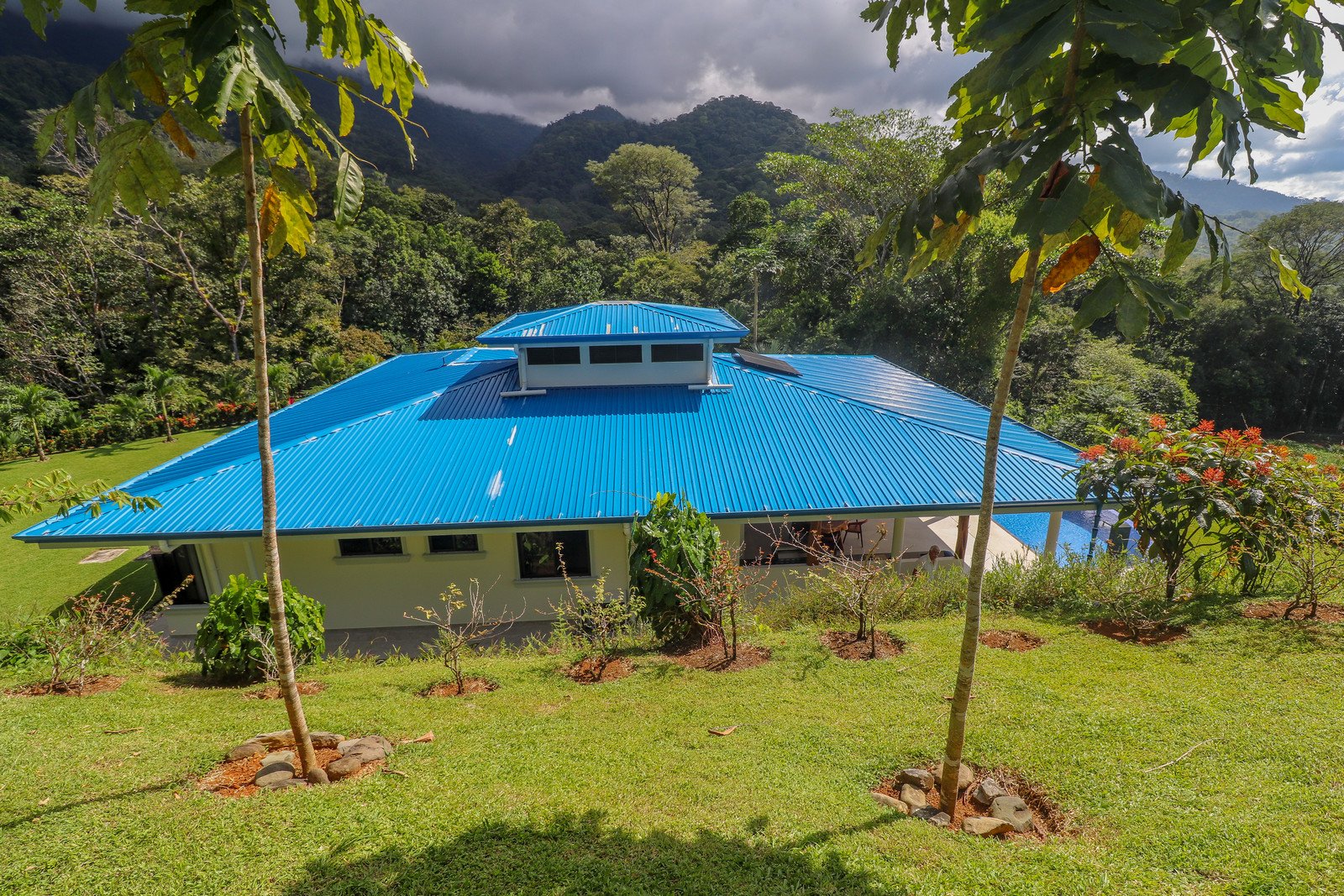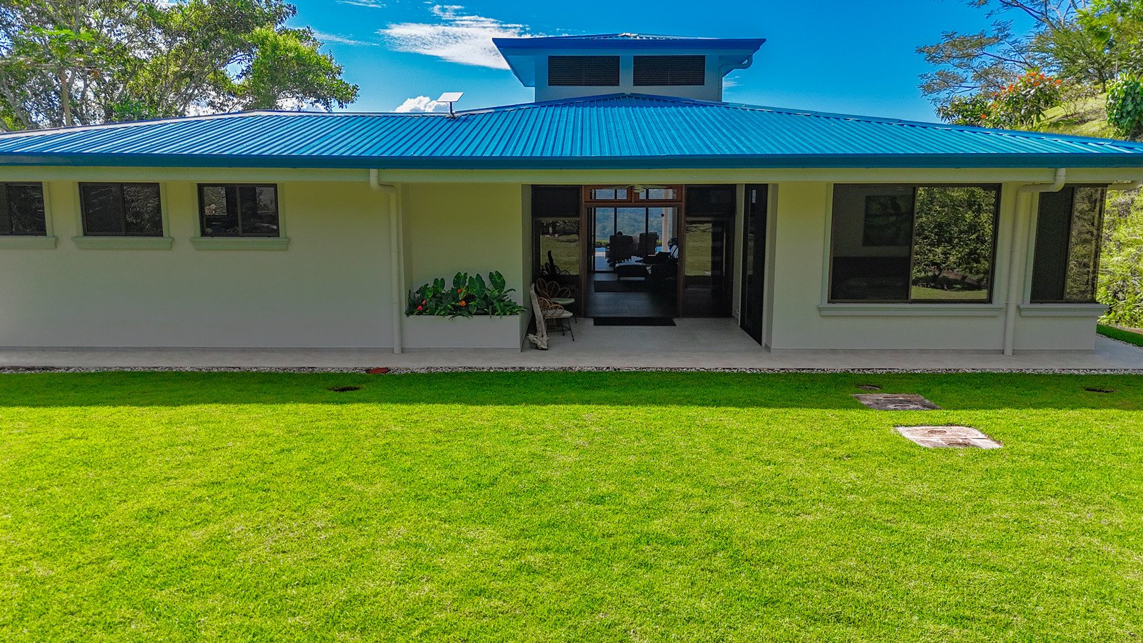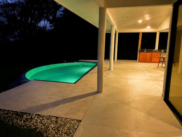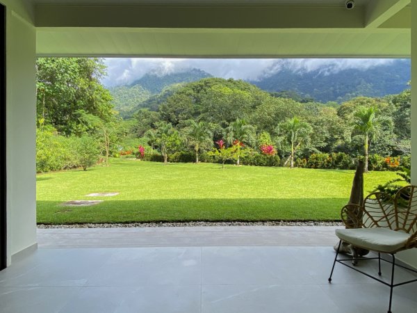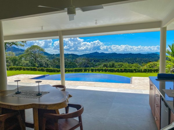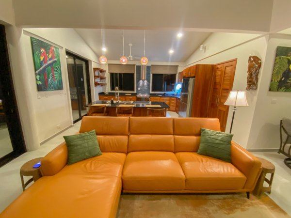This brand-new home is a triumph of openness, convenience, beauty and design. The sturdy construction sits on a secure concrete pad with elegant marble cladding while the gorgeous Guanacaste lumber fit-outs bring warmth and refinement. The house is surrounded by parkland-like yards, tended hedges, and tropical trees & shrubs.