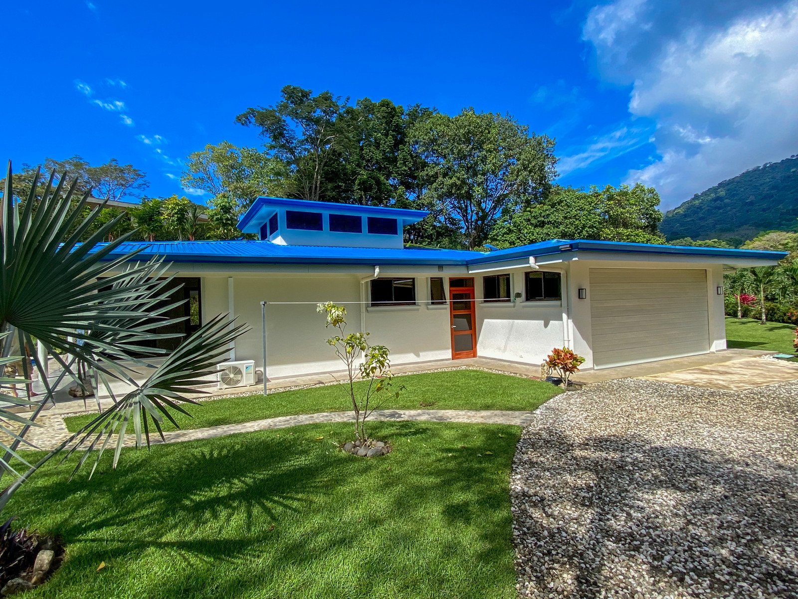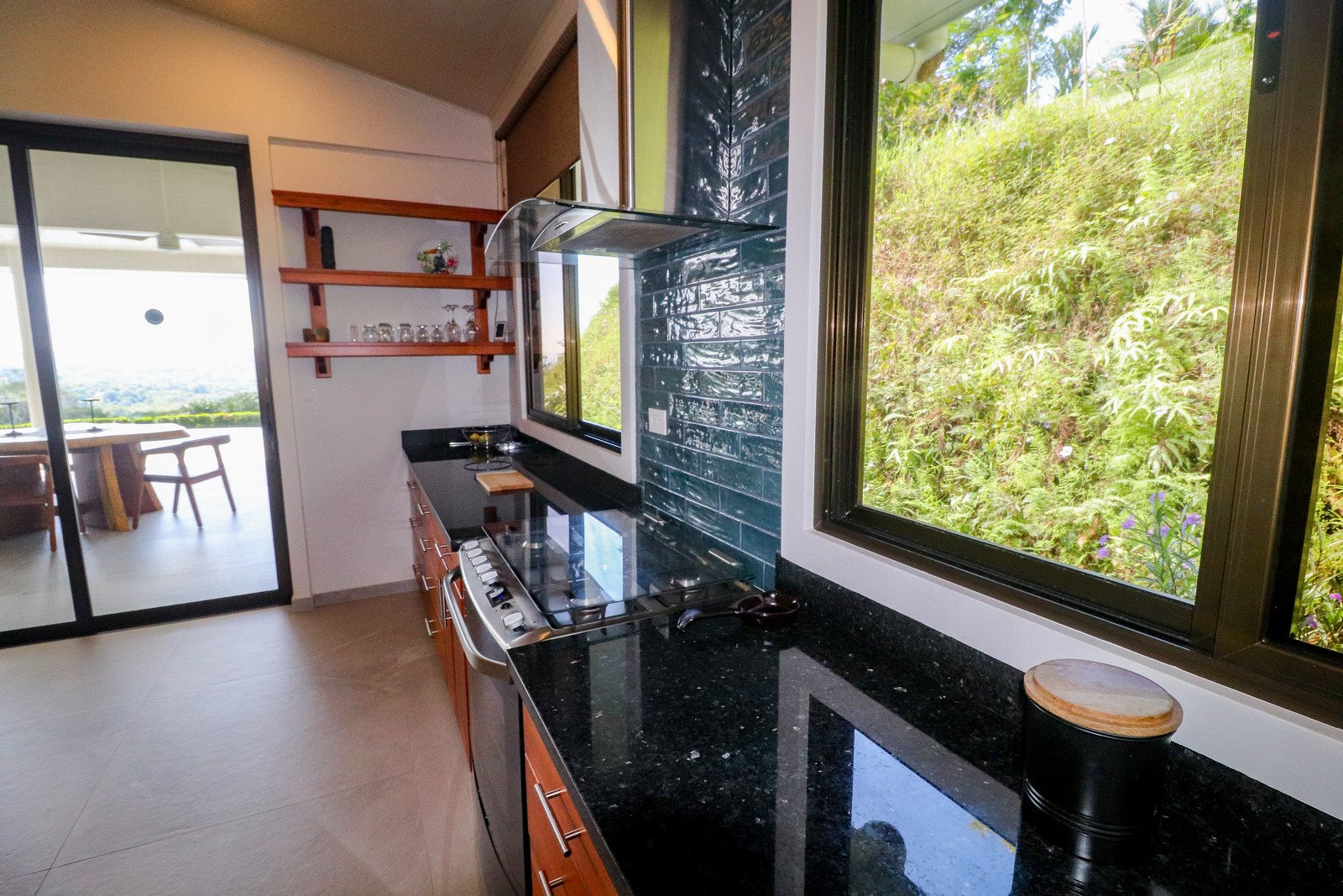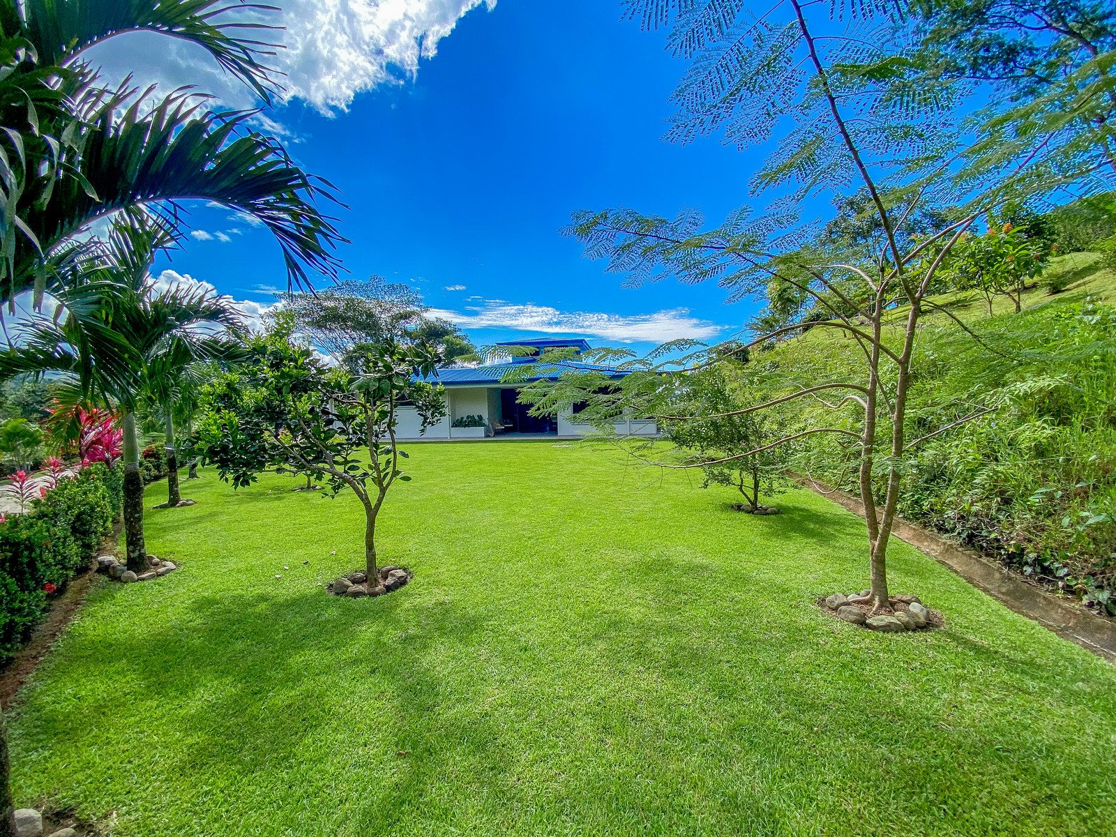 This brand-new home is a triumph of openness, convenience, beauty and design. The sturdy construction sits on a secure concrete pad with elegant marble cladding while the gorgeous Guanacaste lumber fit-outs bring warmth and refinement. The house is surrounded by parkland-like yards, tended hedges, and tropical trees & shrubs.