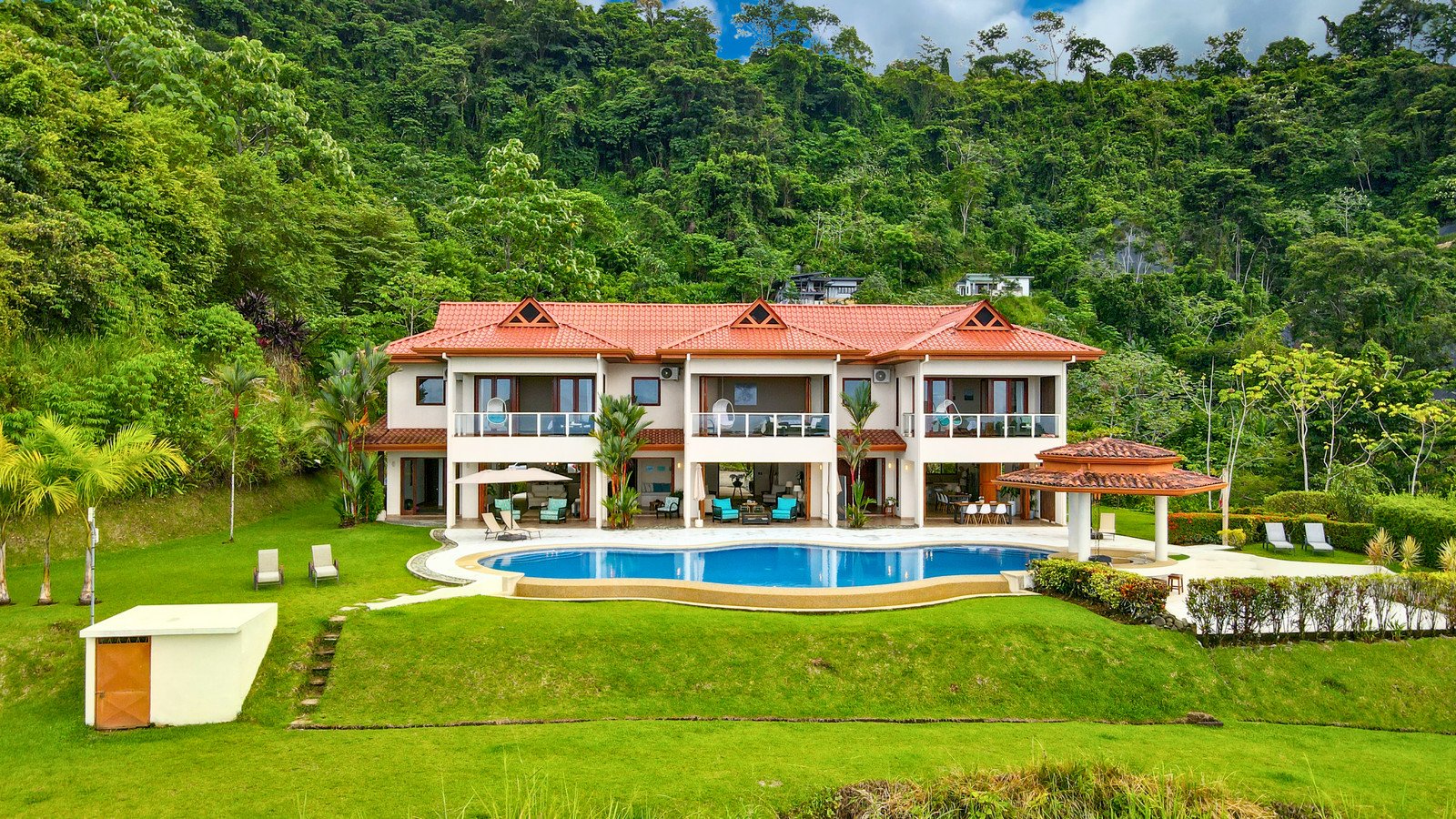 - Five beautifully designed bedrooms upstairs, each with its own ensuite bathroom, offering comfort, privacy, and sweeping ocean or jungle views.