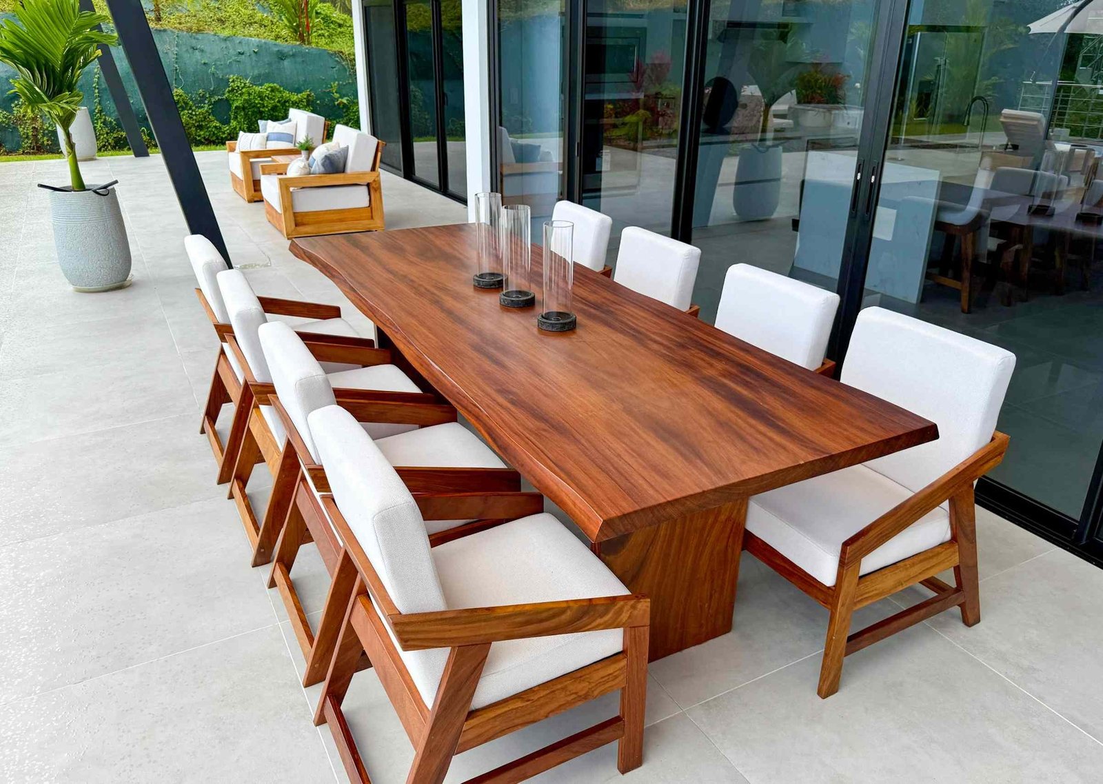 Beyond the interior, just off the kitchen you will find an outdoor dining area that invites stylish and intimate al fresco meals, imagine sharing a meal with your friends and family in this special space with the sounds of nature calling from the jungle. In front of the home, between you and the sparkling Pacific Ocean, the oversized terraza is calling you with a tiled infinity pool and a separate spa to enjoy that nightly beverage with your friends while you soak and ample room to spread out and catch some rays. Also, don’t miss the family firepit with plenty of room for the whole family to gather after a day of adventures.