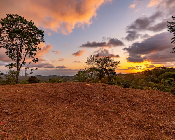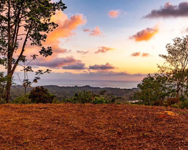 Few things compare to watching the sunset over the Pacific from your own hilltop in the rainforests of Costa Rica. This beautiful 3,964 m² (0.98-acre) lot in Ojochal offers exactly that: breathtaking views of the ocean and sunsets from the entire building site, surrounded by lush nature and constantly cooled by sea breezes.