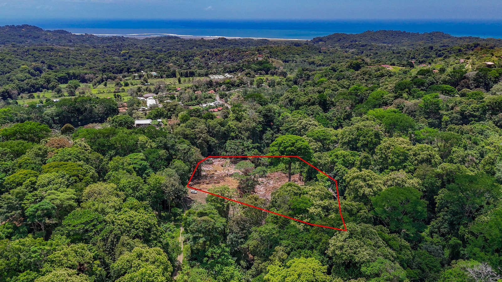 The property is easily accessed via a scenic 4 km drive from the Costanera Sur Highway, all but 300m of it being paved. Turning off the highway, you will enter the main road, Calle Principal, and cross a brand-new bridge at the entrance to Ojochal. The route then winds through the town and surrounding neighbourhoods, businesses, jungles & rivers. Just after passing through the main developed centre of the town, the road passes thick rainforests where a final, 100m span takes you from the public road to the property entrance.