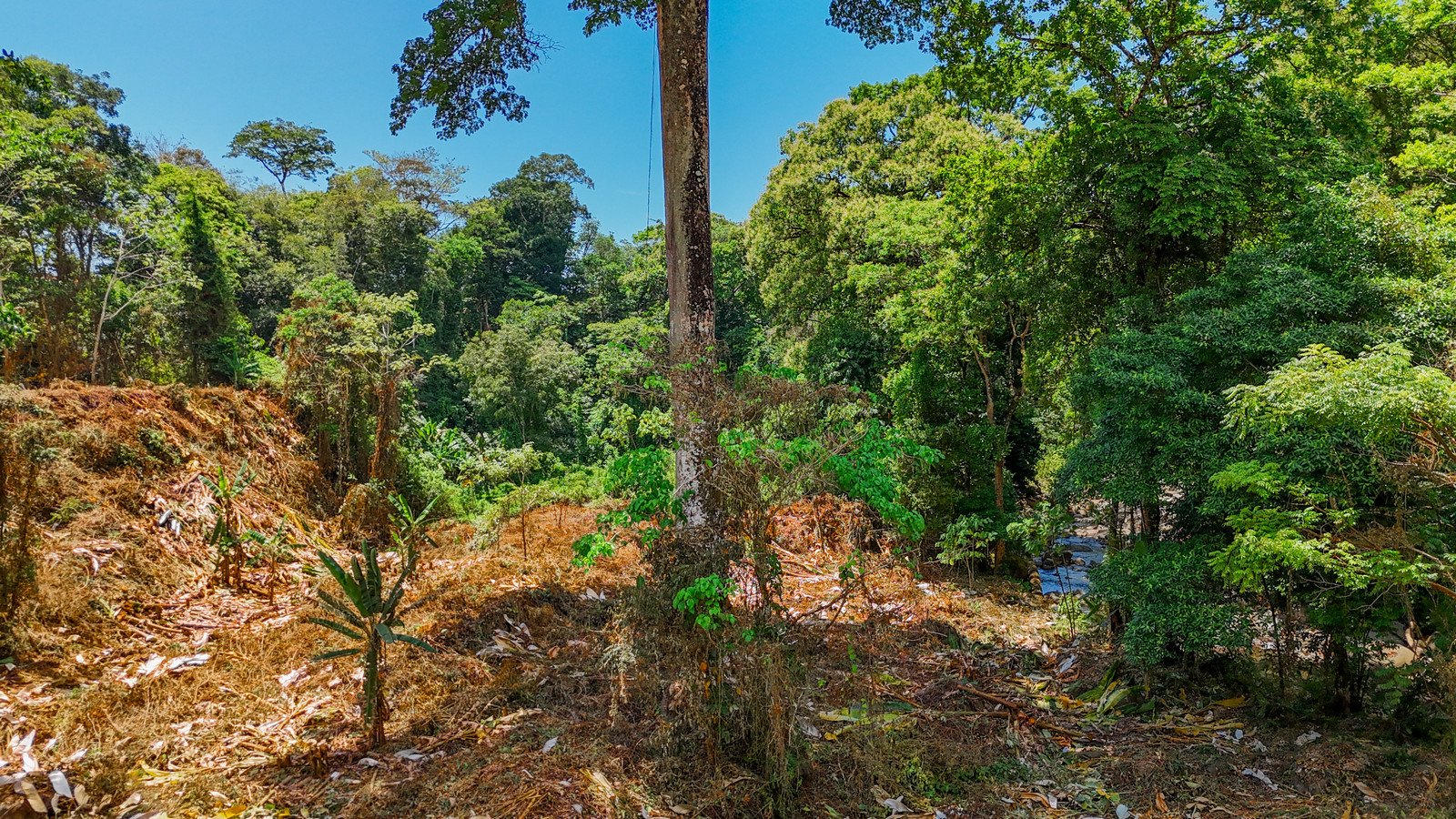 The end-of-road location, protected riverside jungles and inaccessible slopes just behind the property ensure that the land is, and always will be, surrounded by towering lowland rainforests. And an important wildlife corridor passes through the land on its way to the mountains. Just 1.5km away, the peaks rise sharply to reach 1,100m or 3,600 feet above sea level. Those high cloud forests are home to jaguars and tapirs as well as many other creatures which live in or utilize the corridor that connects straight to Corcovado National Park.