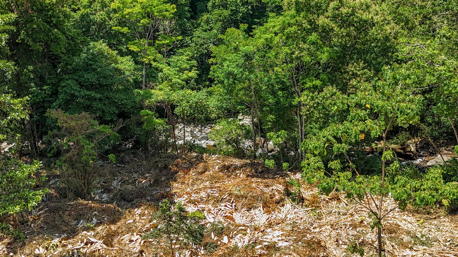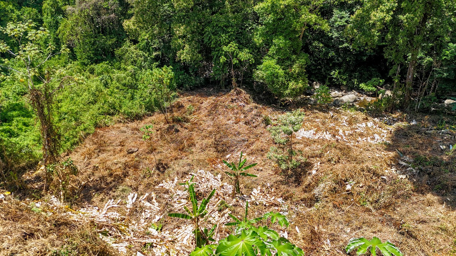 The land borders Tortuga River, a brisk mountain waterway which is always cool & refreshing and a favourite for dry season dips. This river experiences full flow year-round and its lower reaches are lively with kids & families picnicking, swimming or playing along its banks.