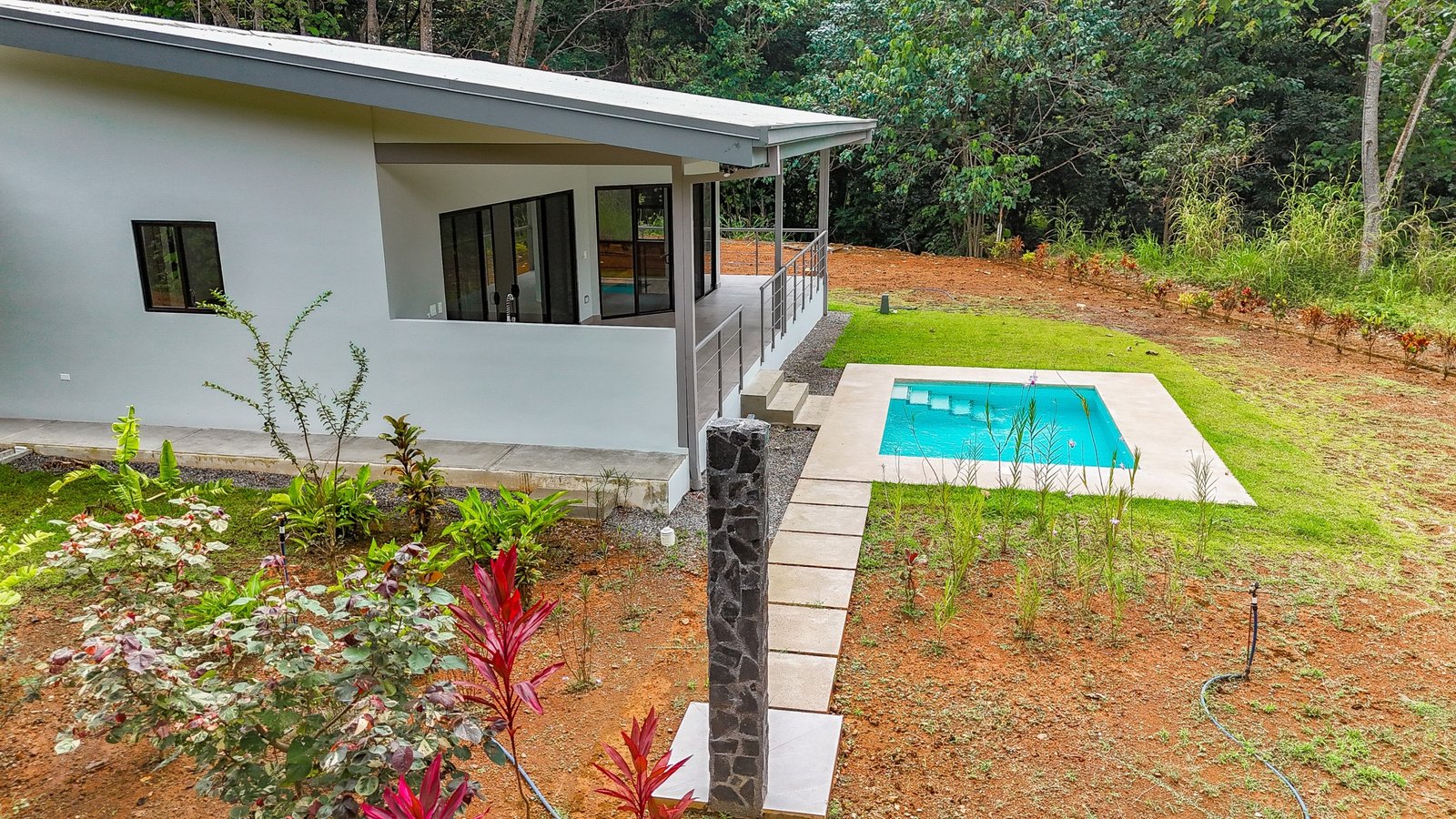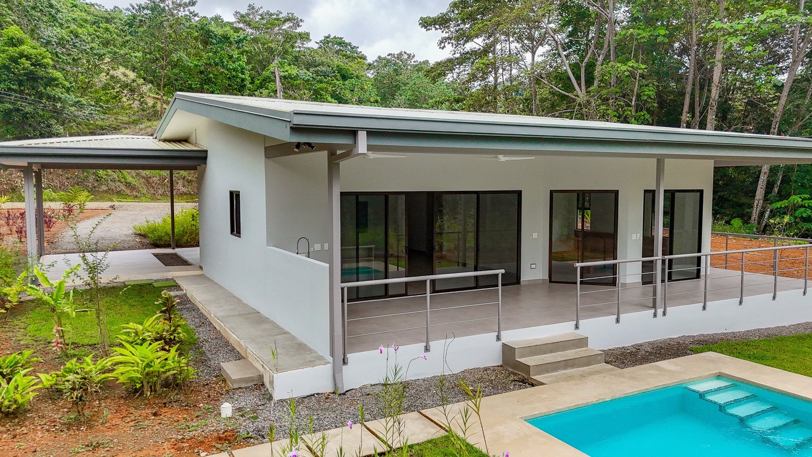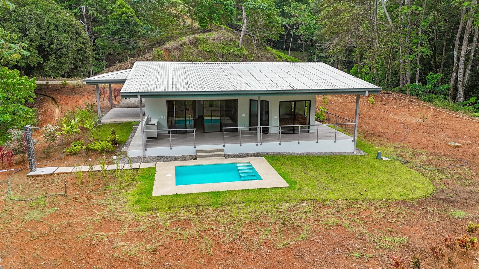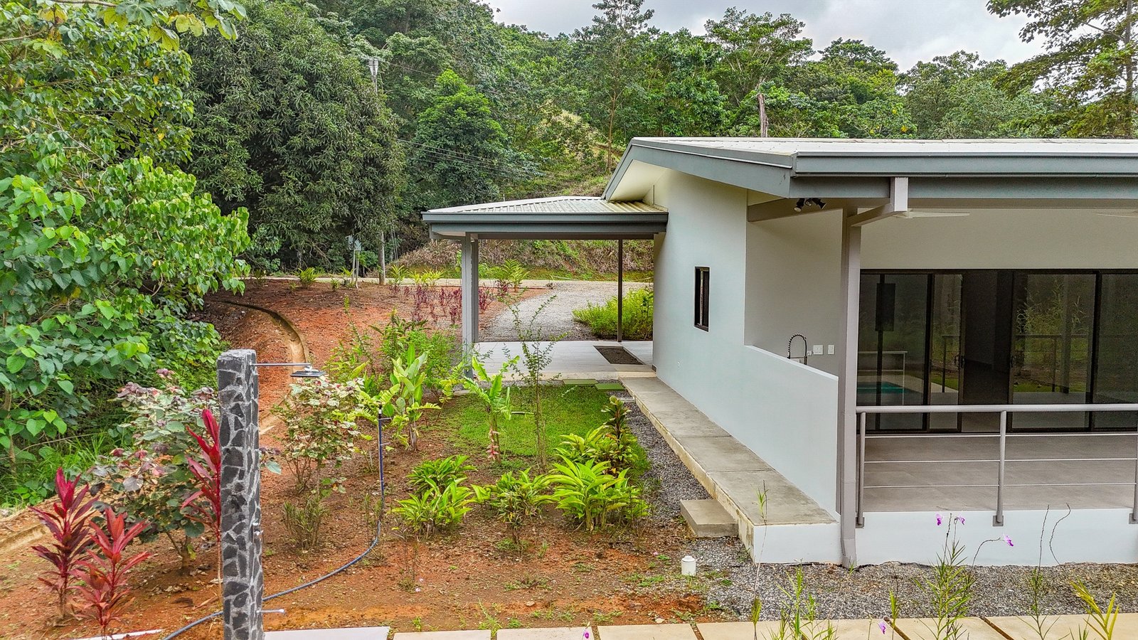 Towering jungles encircle the home on three sides, with most of the 2.5 acres being covered by rainforests. These and nearby forested areas border river valleys and are legally protected to provide animal habitat and erosion control – so you can be sure of the ever-present tropical vibes and must expect to welcome your new jungle neighbors. You will meet them in no time – the macaws, monkeys, poison dart frogs, toucans, anteaters, coatis, iguanas, electric blue morpho butterflies…maybe even a tapir or jaguar?