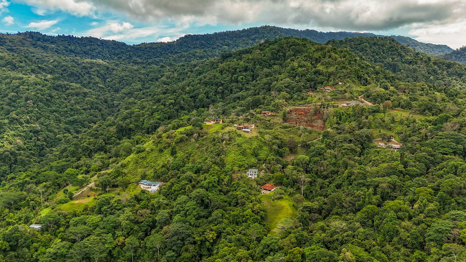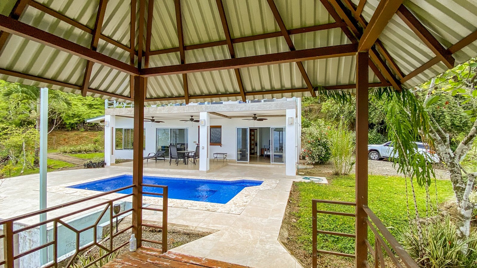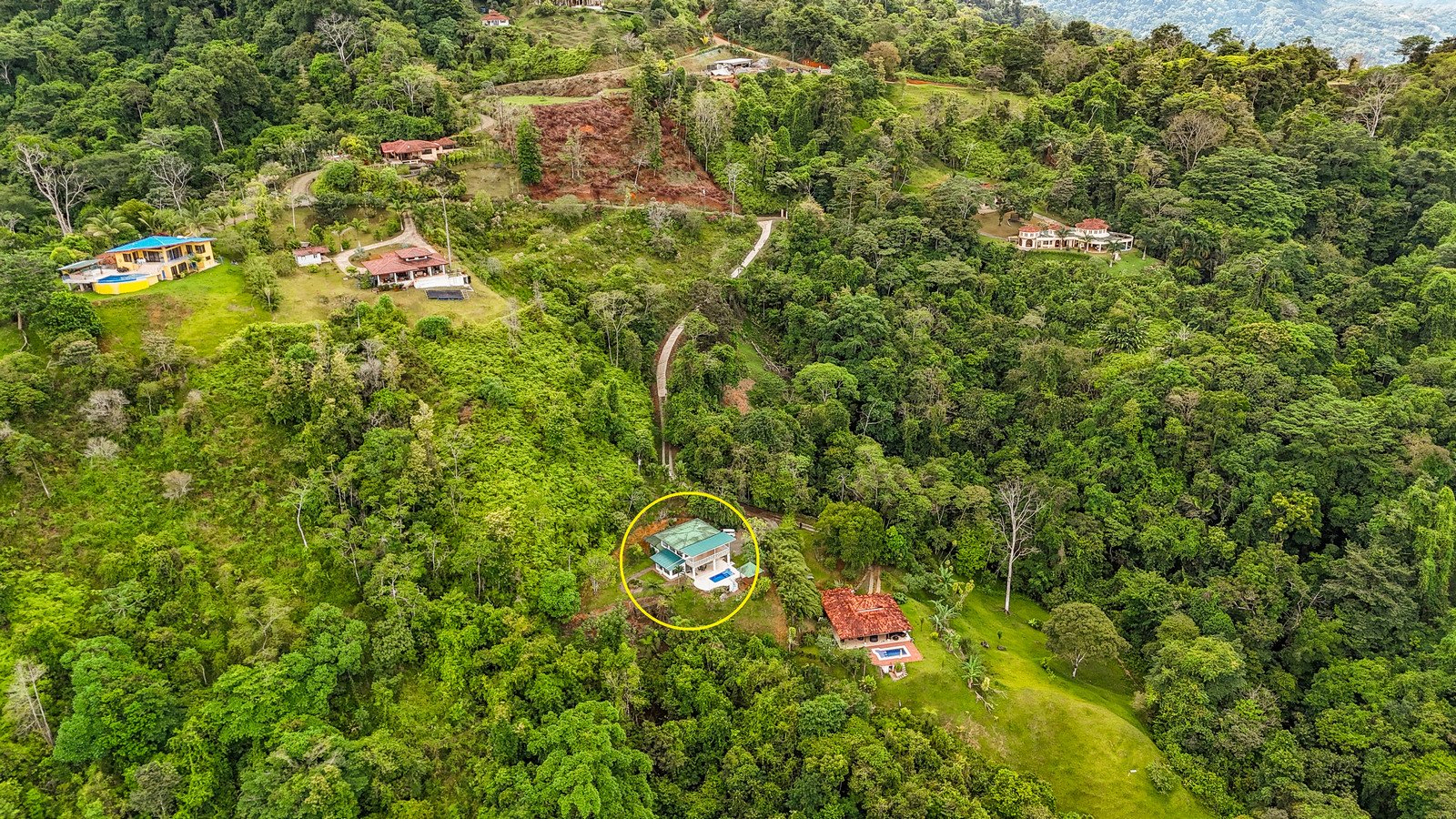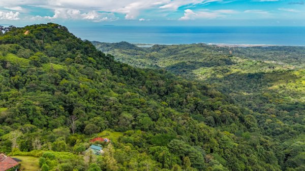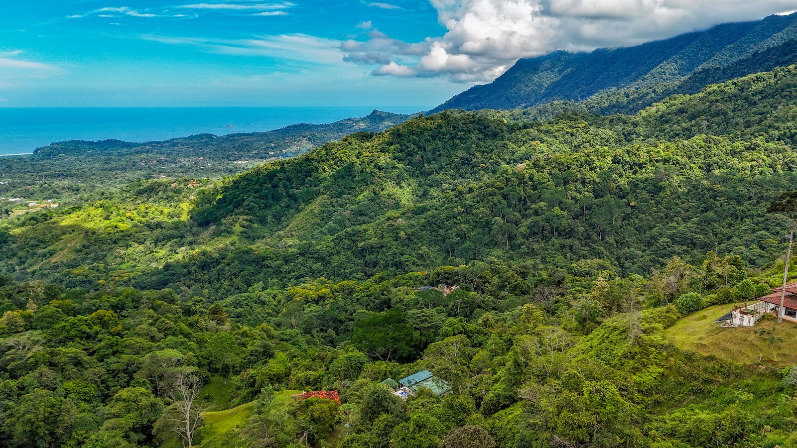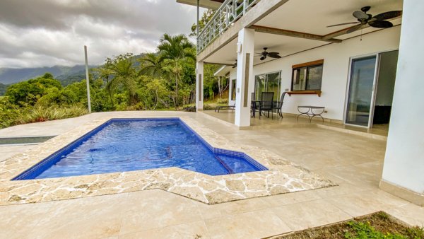 This beautiful 11,129 m2 or 2.75-acre property for sale near Ojochal rests 520 meters or 1710 feet above lush hills, rainforests and Pacific shores giving unforgettable mountain, jungle and both white and blue-water ocean sunset views. The elevation also blesses the grounds with cooler temperatures and refreshing breezes. Privacy is assured and the friendly expat neighbours will soon become your friends. Access is via a prepared and recently upgraded public road which then goes on to San Isidro (an important road which will always be kept in good shape). A prepared concrete driveway ascends to the covered carport and additional parking area behind the home. A swimming pool, gazebo and lush tropical grounds complete this jungle immersed offer.