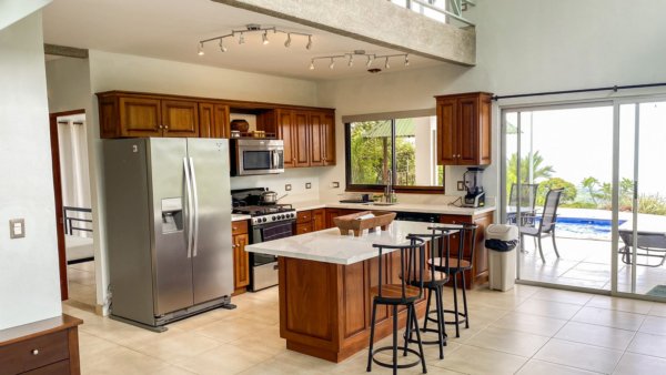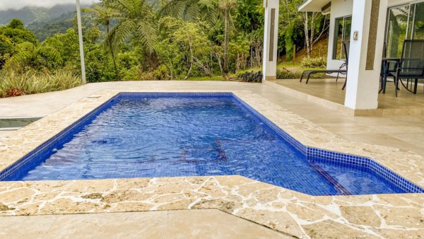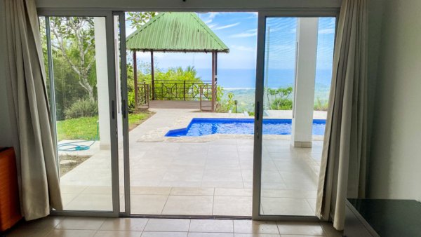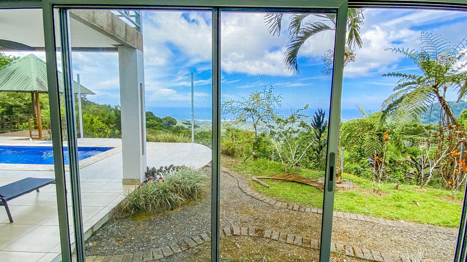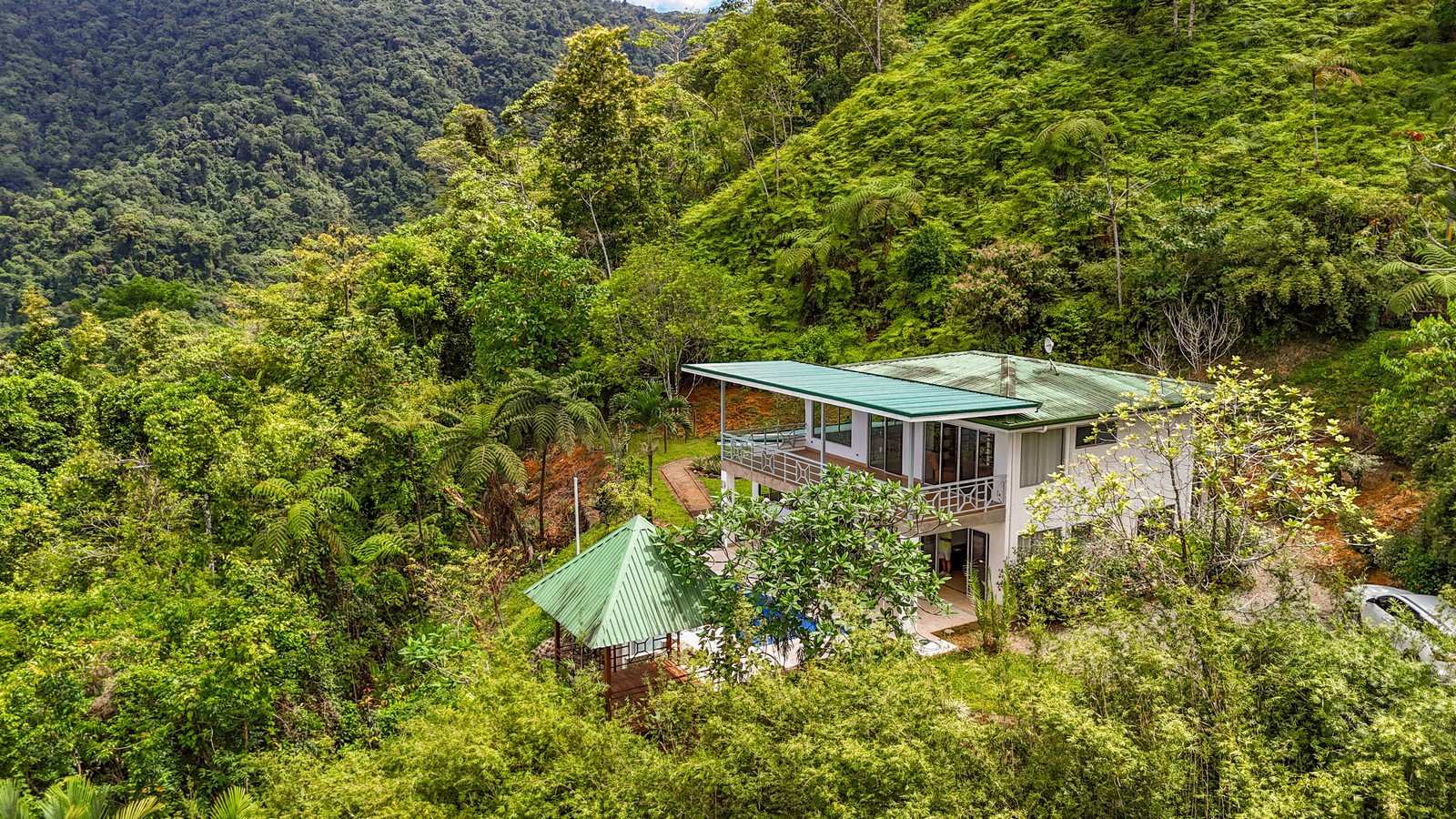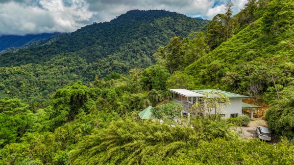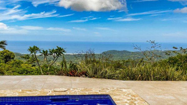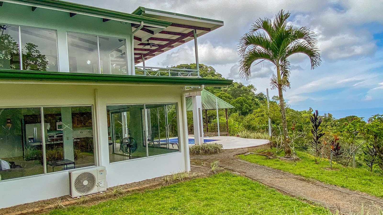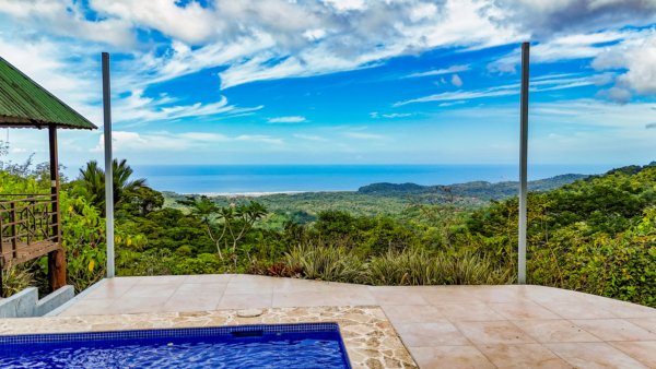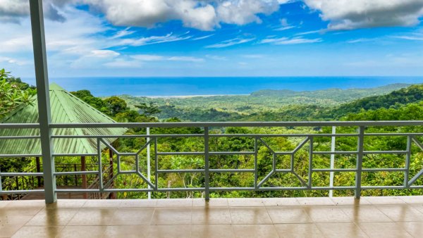 This beautiful 11,129 m2 or 2.75-acre property for sale near Ojochal rests 520 meters or 1710 feet above lush hills, rainforests and Pacific shores giving unforgettable mountain, jungle and both white and blue-water ocean sunset views. The elevation also blesses the grounds with cooler temperatures and refreshing breezes. Privacy is assured and the friendly expat neighbours will soon become your friends. Access is via a prepared and recently upgraded public road which then goes on to San Isidro (an important road which will always be kept in good shape). A prepared concrete driveway ascends to the covered carport and additional parking area behind the home. A swimming pool, gazebo and lush tropical grounds complete this jungle immersed offer.