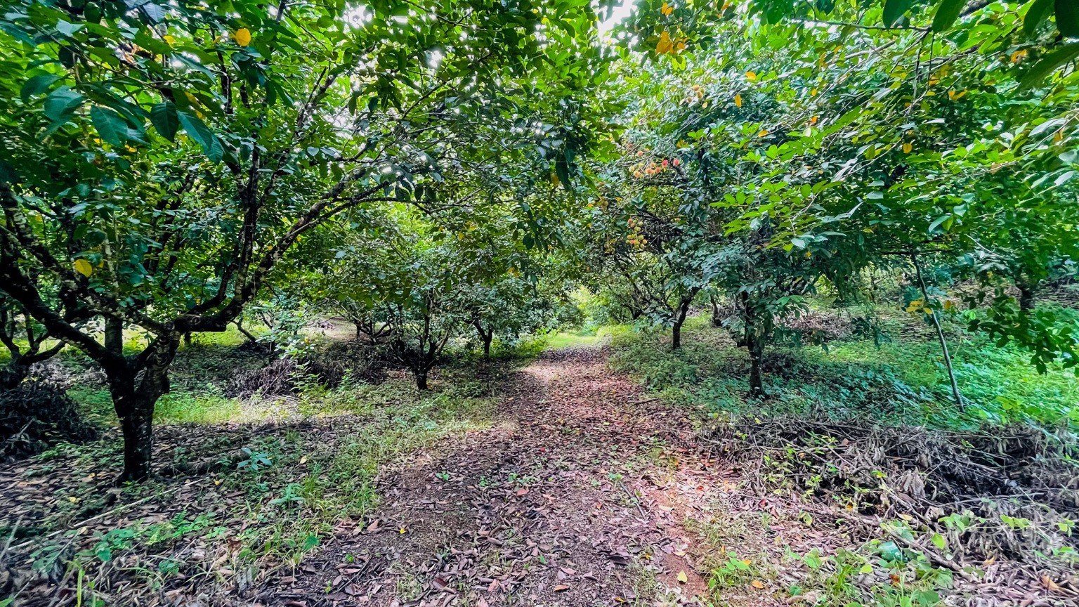 There is an existing rustic house on-site, but the true magic lies in the prime building location above the lychee plantation. This elevated spot offers panoramic views of the entire property, surrounding jungle, and nearby mountain ridges.