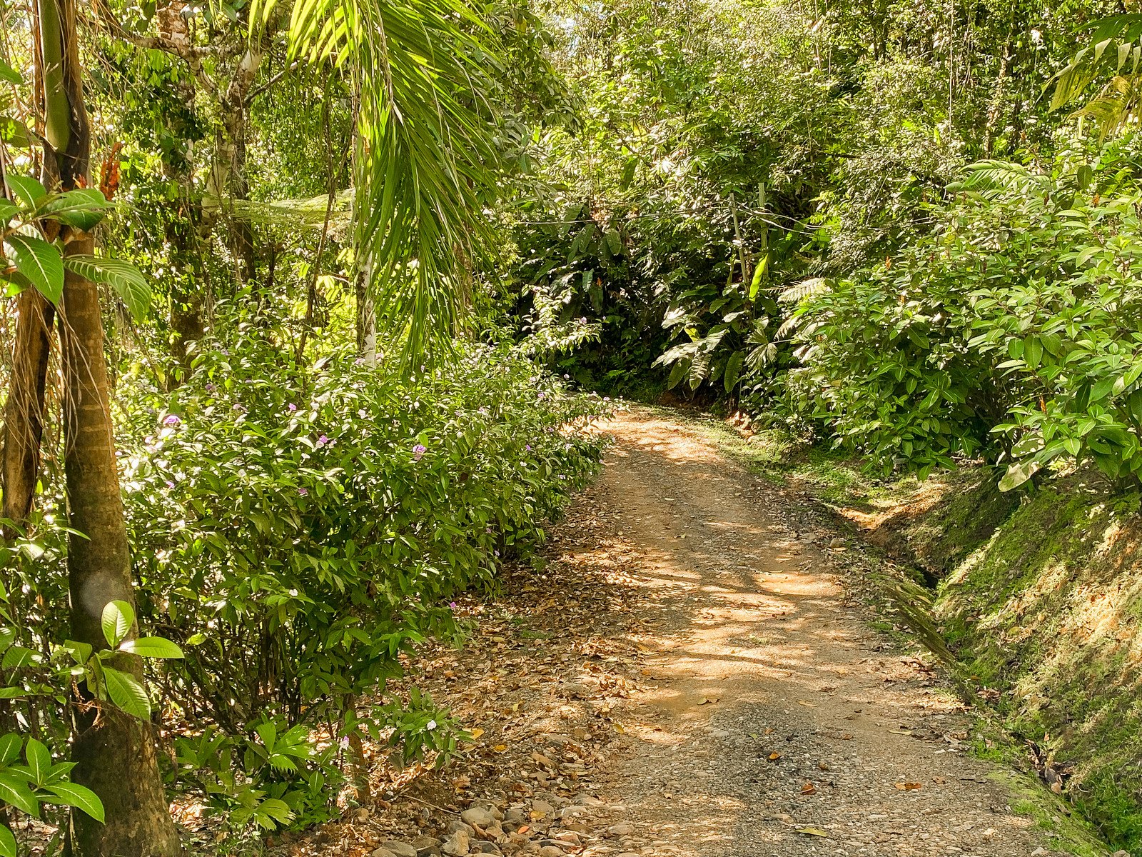 The property is easily accessed via a scenic 5.5 km drive from the Costanera Sur Highway. Turning off the highway, you will enter the main road, Calle Principal, and cross a brand-new bridge at the entrance to Ojochal. The route then winds through the town and surrounding neighborhoods, businesses, jungles & rivers. Just after passing through the main developed center of the town, the road climbs through the thick rainforests where a final, prepared 1.5km section leads you to the front gates.