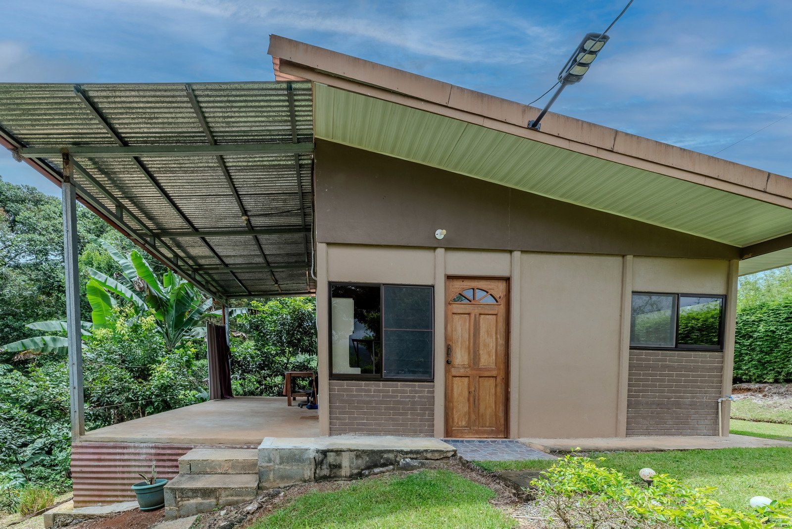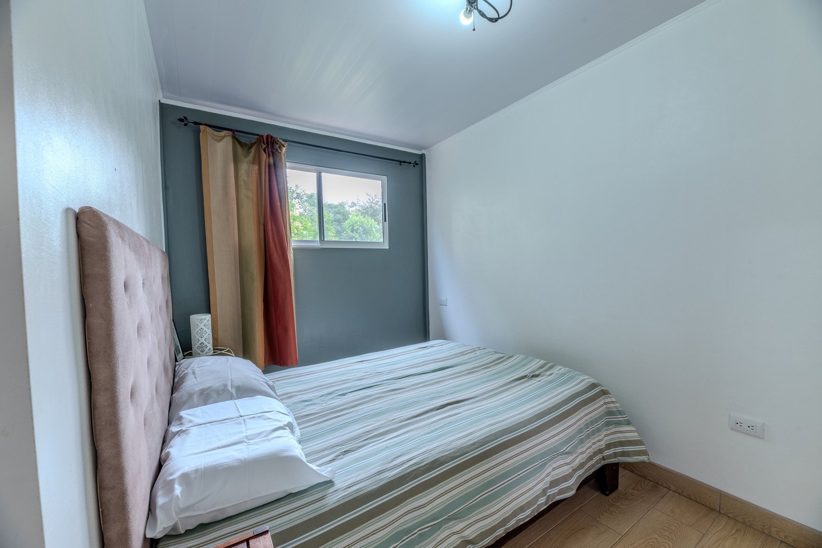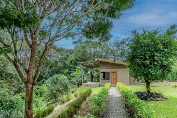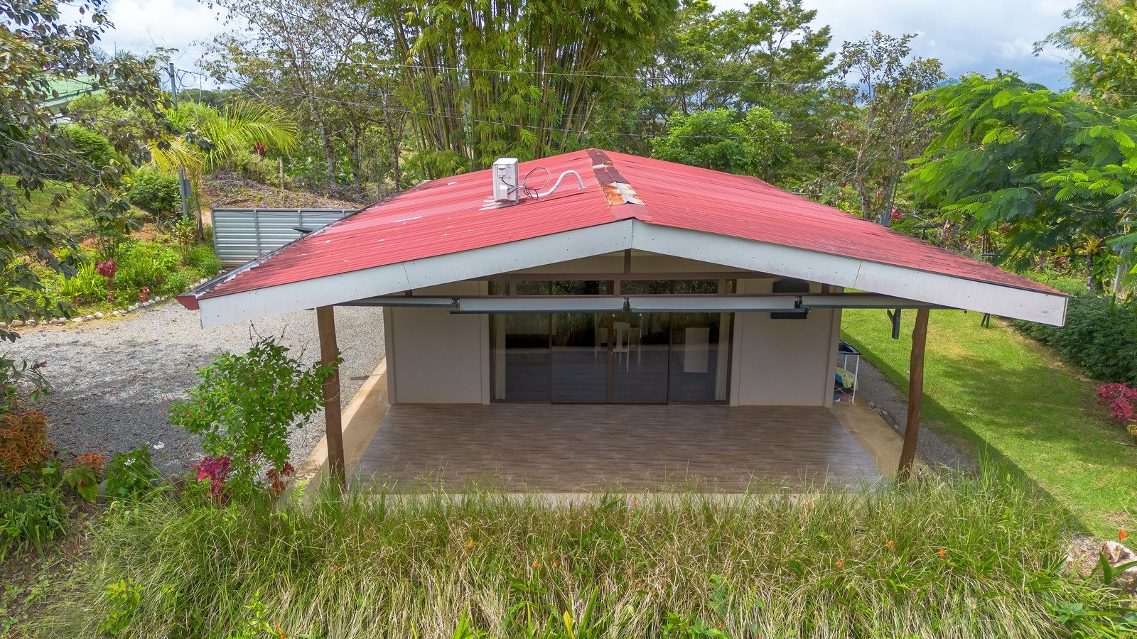 The fourth unit is a charming Costa Rican-style house with its own entrance, manual gate, and two-car carport. It includes two bedrooms, one bathroom, and a well-maintained garden with flowering plants that attract butterflies, hummingbirds, and other local wildlife.