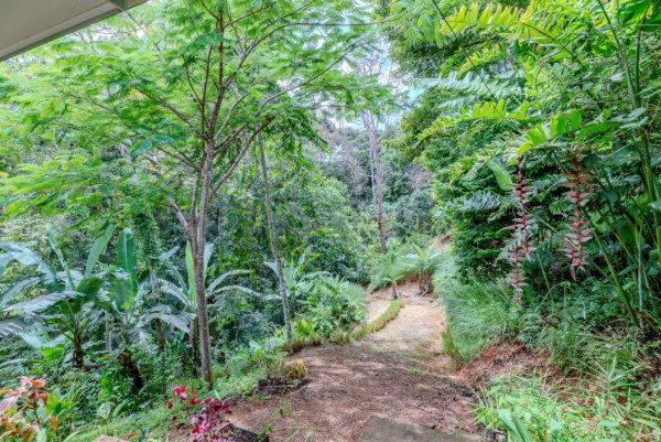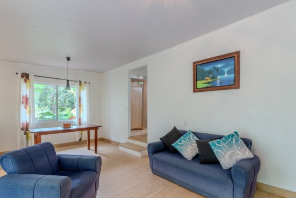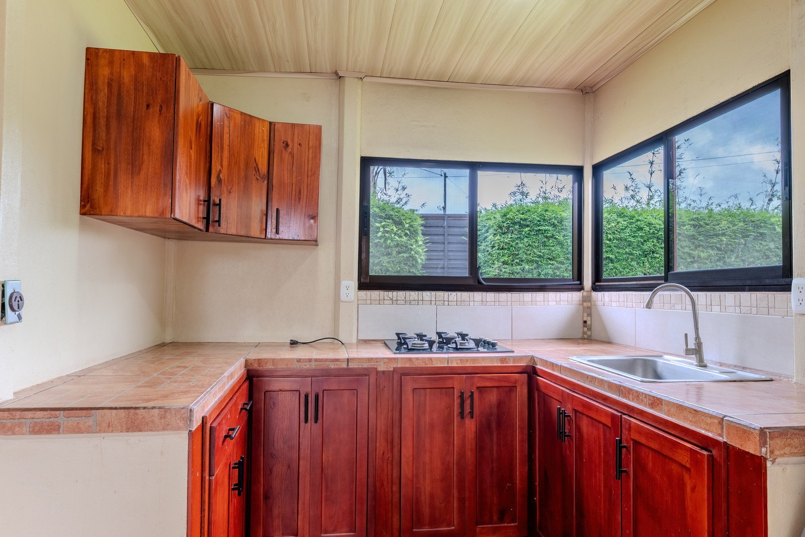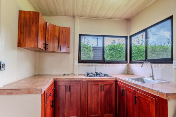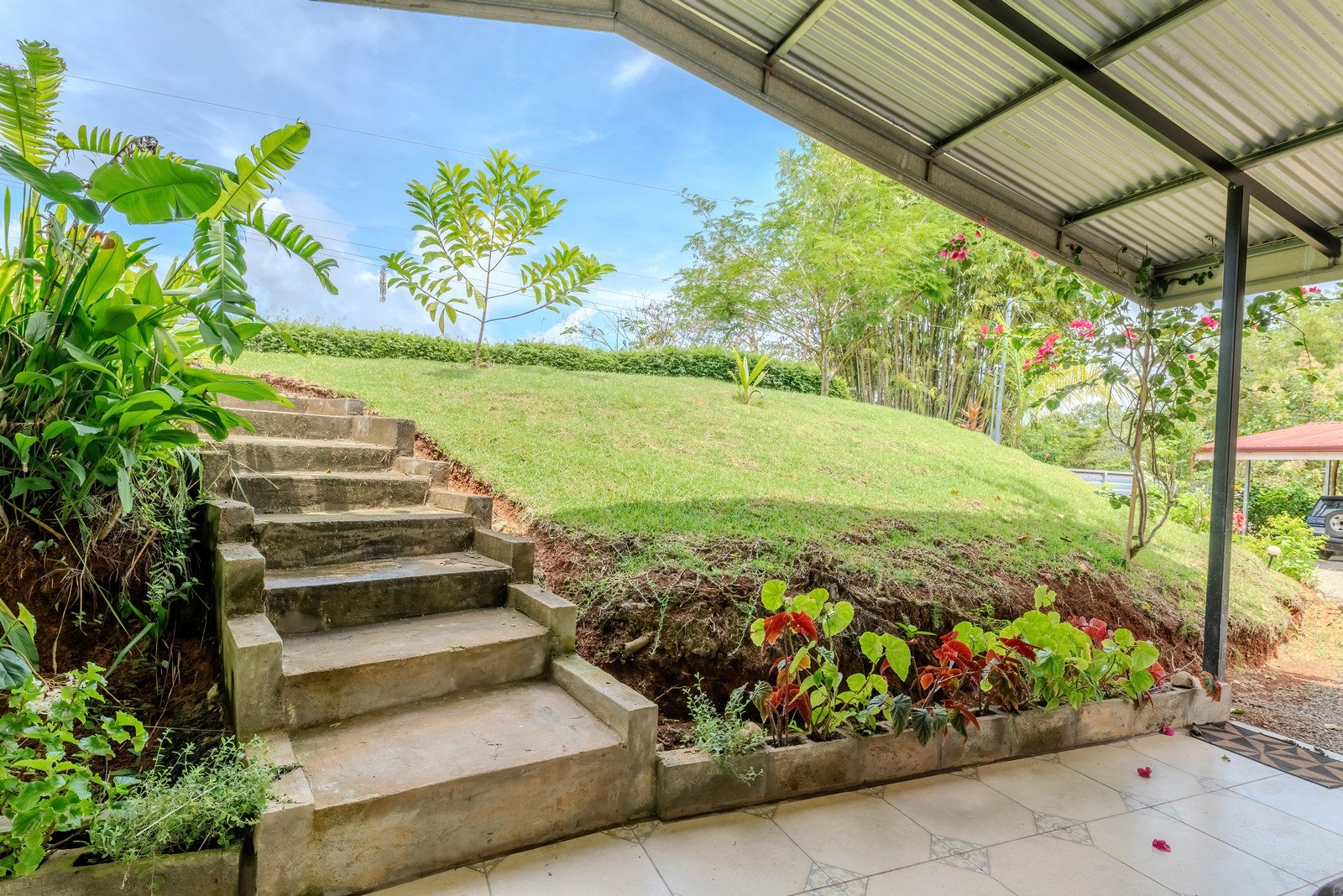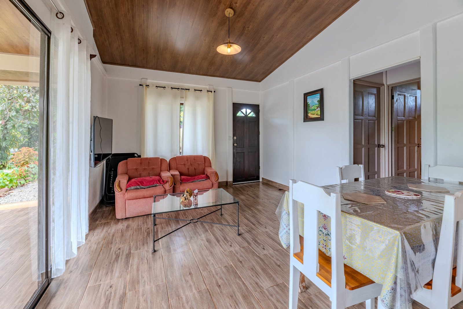 The fourth unit is a charming Costa Rican-style house with its own entrance, manual gate, and two-car carport. It includes two bedrooms, one bathroom, and a well-maintained garden with flowering plants that attract butterflies, hummingbirds, and other local wildlife.