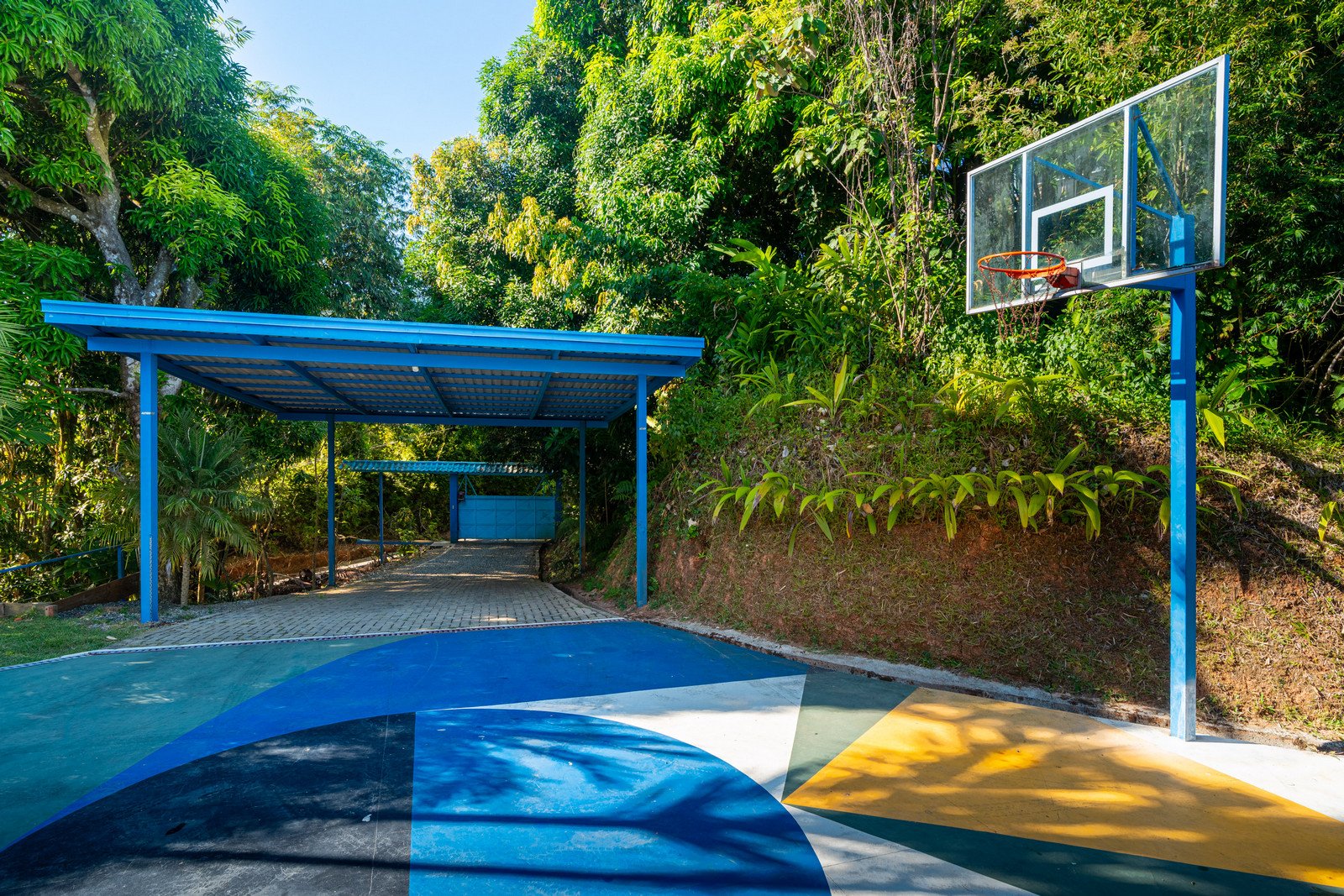 The property also promotes a healthy, active lifestyle, featuring a private trail leading to a dedicated yoga and stargazing platform, an outdoor fitness area, and even a basketball half-court. The surrounding grounds are rich with mature fruit trees—mango, coconut, guanábana, banana, and more—along with an organic garden producing fresh greens throughout much of the year. Fresh mountain spring water, tested for purity, flows directly to the home. With a legal water source, a 5,000 liter reserve tank, three stage filtration system and water catchment system you never have to worry about water supply! Every aspect of this property has been planned with intention!
