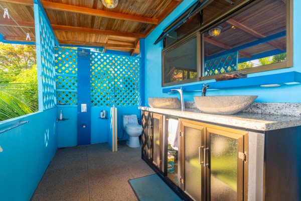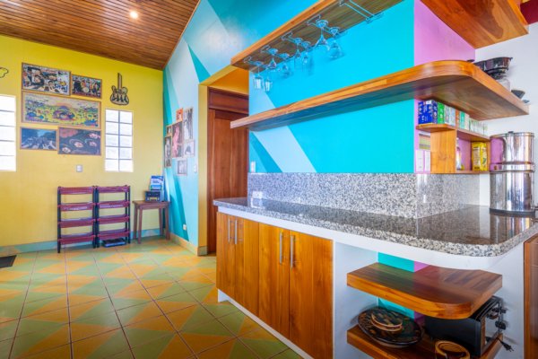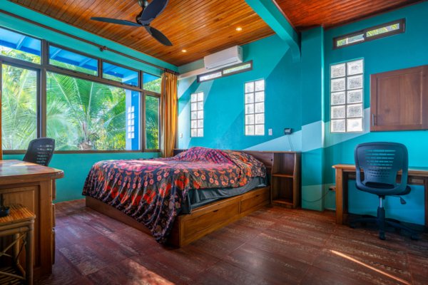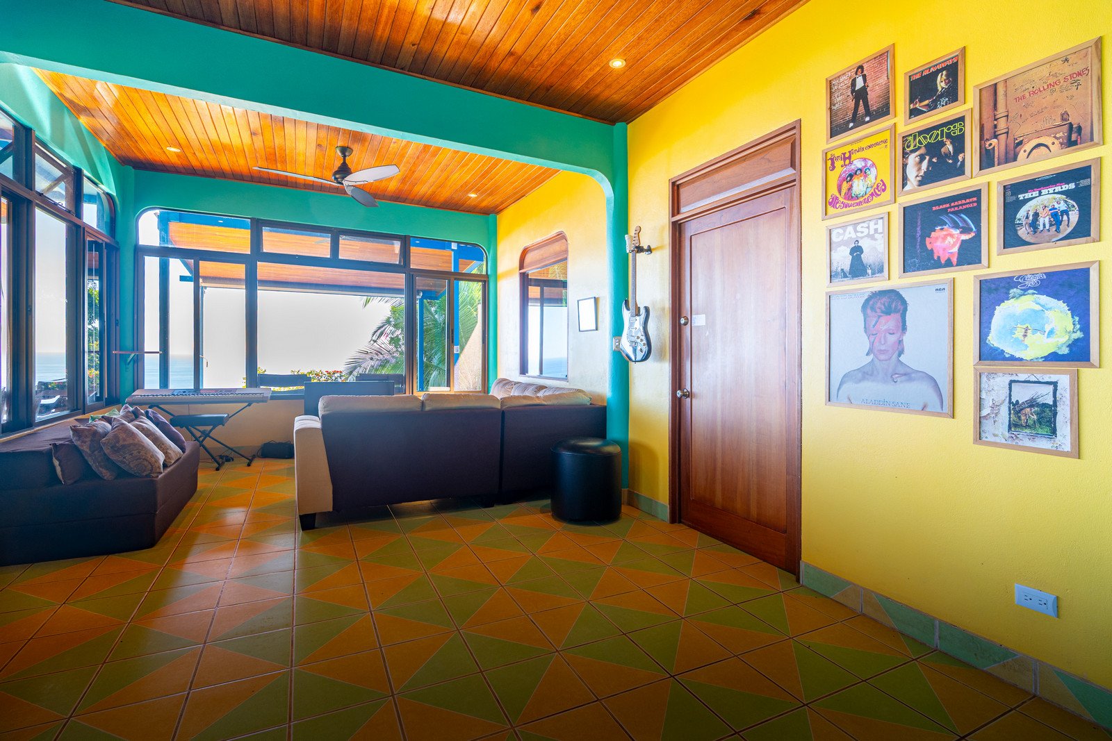 Inside, the residence offers a thoughtfully updated kitchen with modern appliances, and a comfortable living area. The layout makes it an exceptional full-time residence, vacation home, or investment property in one of Costa Rica’s most desirable coastal regions. the upper level serves as one spacious primary bedroom space, with lounge, work area, private balcony and open air bathroom, all of which enjoy unique vantage points over the emerald mountains and the dynamic coastline.