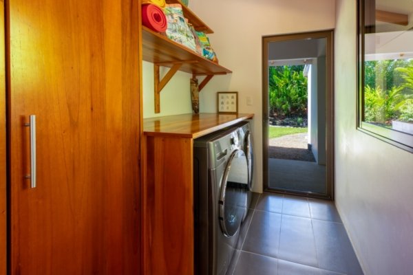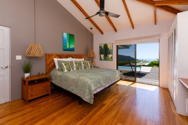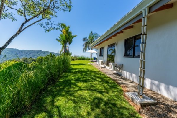 Nestled within a private and gated development, this exceptional luxury residence offers the perfect balance of privacy, nature, and refined living. Set on a generous property surrounded by lush tropical gardens, the home enjoys breathtaking panoramic ocean and valley view’s extending outwards. Mature fruit trees and productive coconut palms enhance the serene landscape, while a natural creek and charming waterfall flow through the property, at the lower part, creating a rare and tranquil setting.