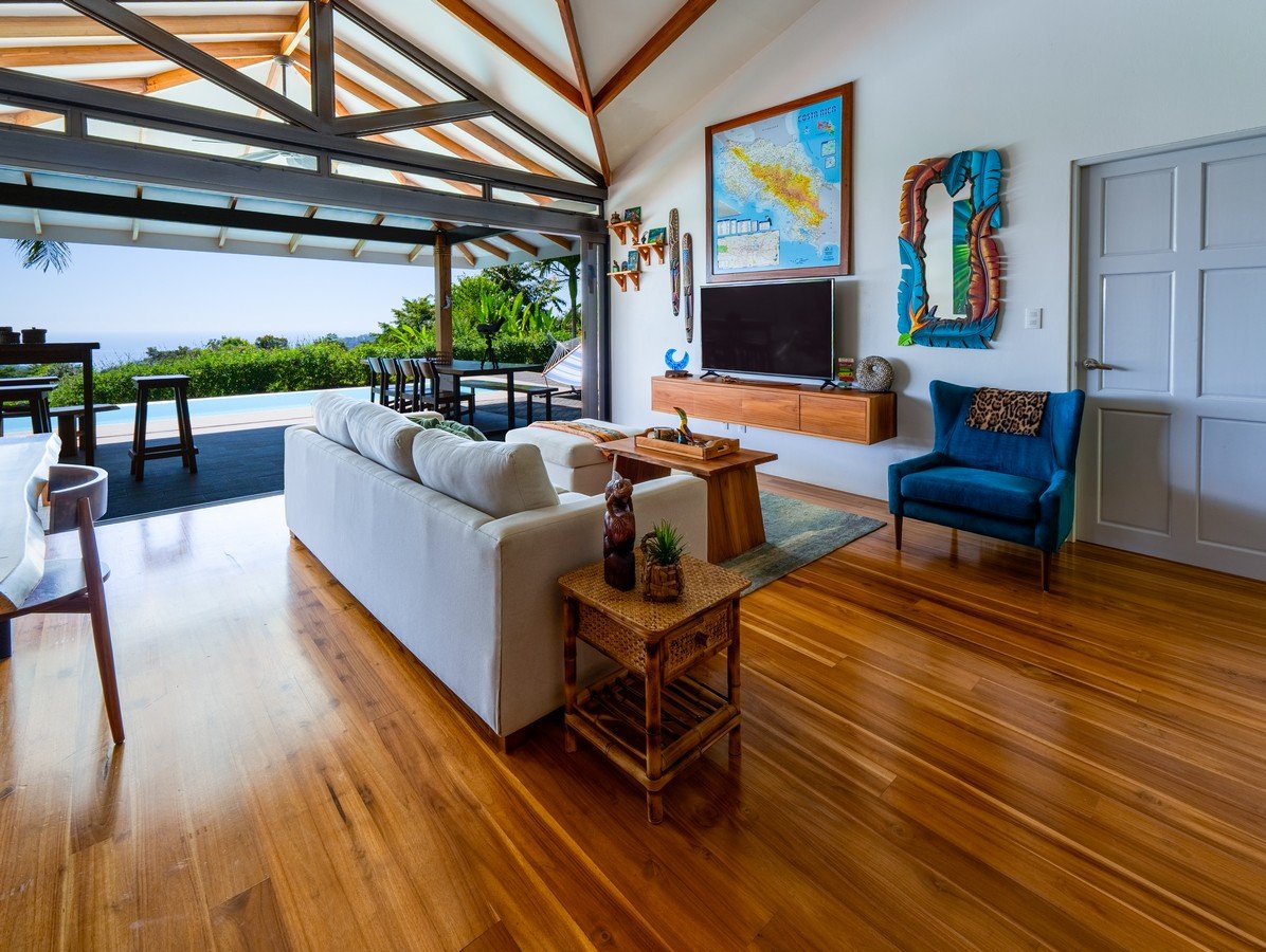 Offered turn-key and fully furnished, the residence showcases professionally curated interior design, with warm teak and tiled floors throughout and striking custom Guanacaste wood dining tables that anchor the living spaces with natural elegance. Every detail has been meticulously maintained, reflecting the home’s exceptional care and quality.