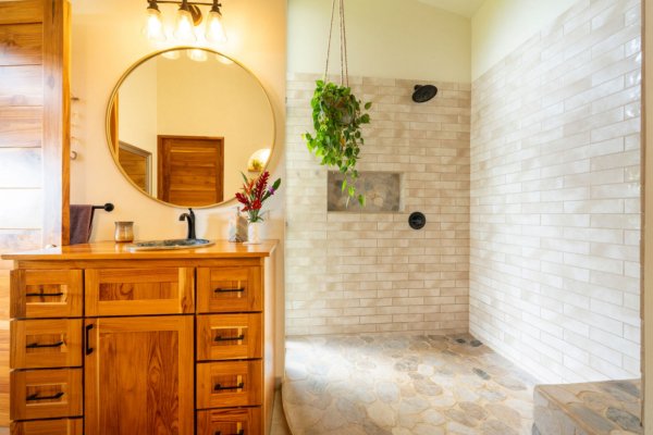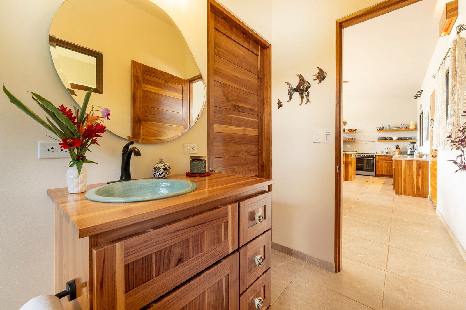 High-end finishes throughout the home with lots of creative artistic details. From Teak wood vanities in the bathrooms, handmade furniture and built in shelves, to mosaic tile inlay on terrace. The contemporary-modern design has a welcoming and open feeling while framing the view from every room. An immediate “wow-factor” as you enter the home looking out over the living room and view onto the pool area lets you know you are home every time you enter.