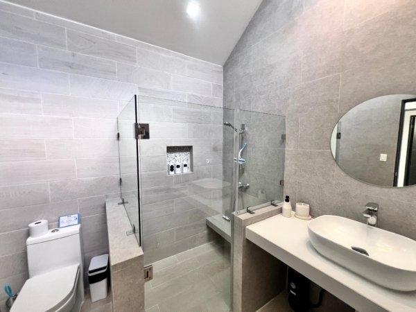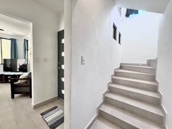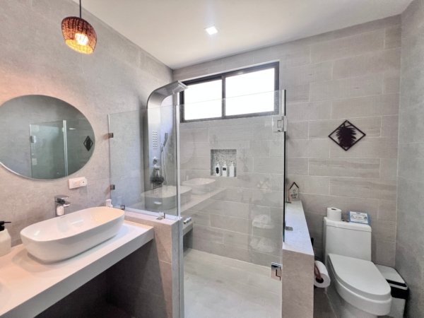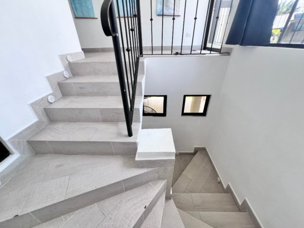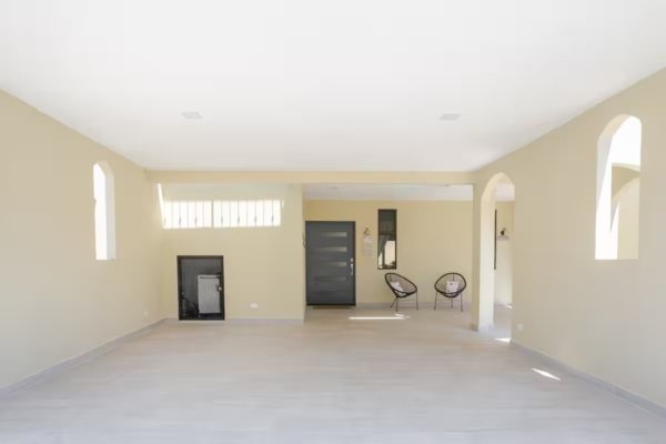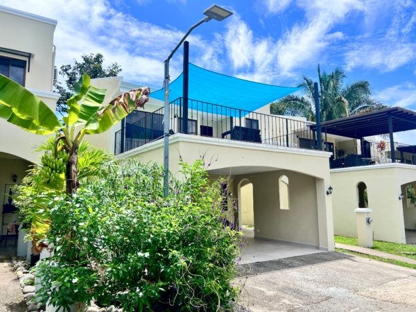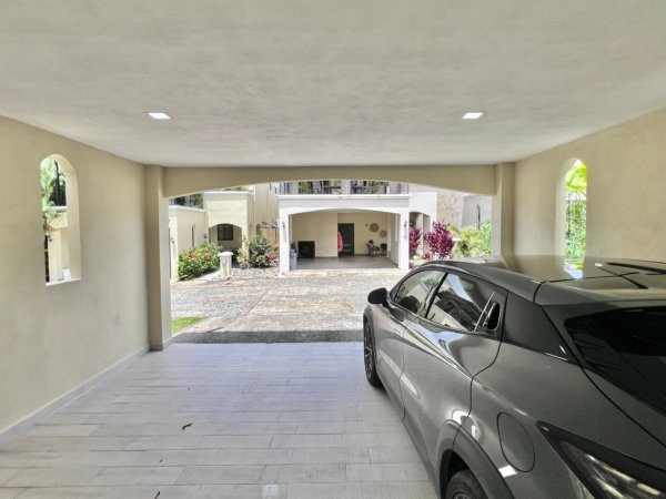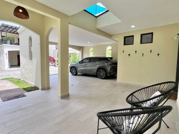 This spacious 3-bedroom, 3-bathroom villa features a covered carport for two vehicles and a welcoming entryway enhanced by skylights that fill the space with natural light.