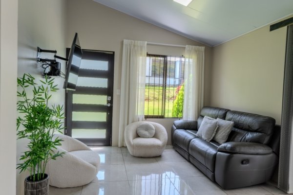 Outdoors, the backyard offers a touch of Costa Rican lifestyle, with fruit trees and space for chickens, creating a sustainable and authentic living experience. The lot is spacious enough to consider adding a pool, expanding gardens, or simply enjoying a large, private green space.