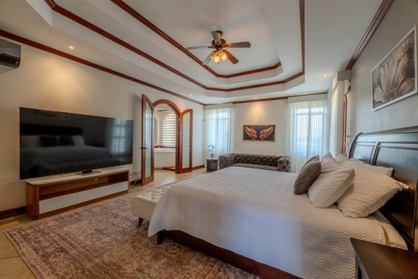 In addition, there is a fully equipped gym with state-of-the-art technology, a full bathroom by the pool, and multiple covered terraces furnished with comfortable outdoor furniture. The master bedroom offers a presidential suite experience, complete with a jacuzzi, separate shower, double vanity, and a spacious walk-in closet.