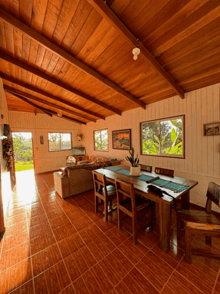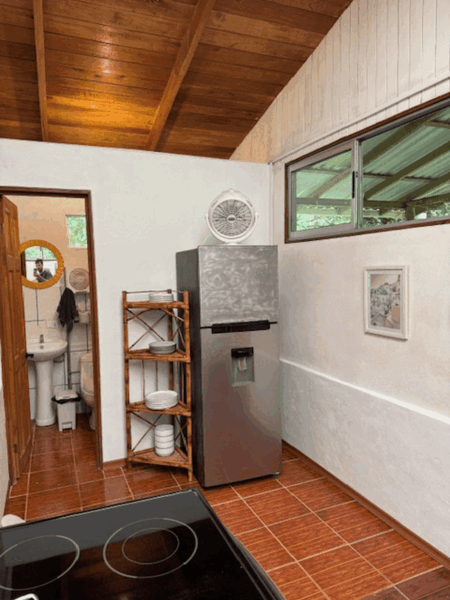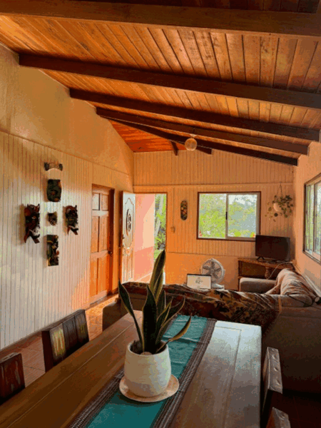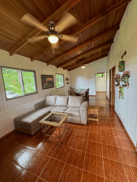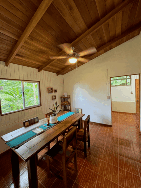 This beautifully remodeled Tico-style home sits on a spacious lot and features 3 bedrooms and 1 bathroom, with a large living area, a kitchen, and a laundry area at the back. The front of the house is complemented by expansive gardens and lush green spaces, offering ample room for expansion, additional construction, or creating your own outdoor oasis. The property also includes open areas adorned with fruit trees, walking paths, and serene corners perfect for relaxing. These trails lead to the second cabin by the river, which offers 1 bedroom, 1 bathroom, and a small kitchen. This charming cabin is an ideal space for rental income or as a private retreat to relax by the river.