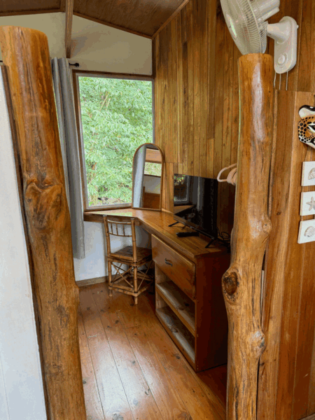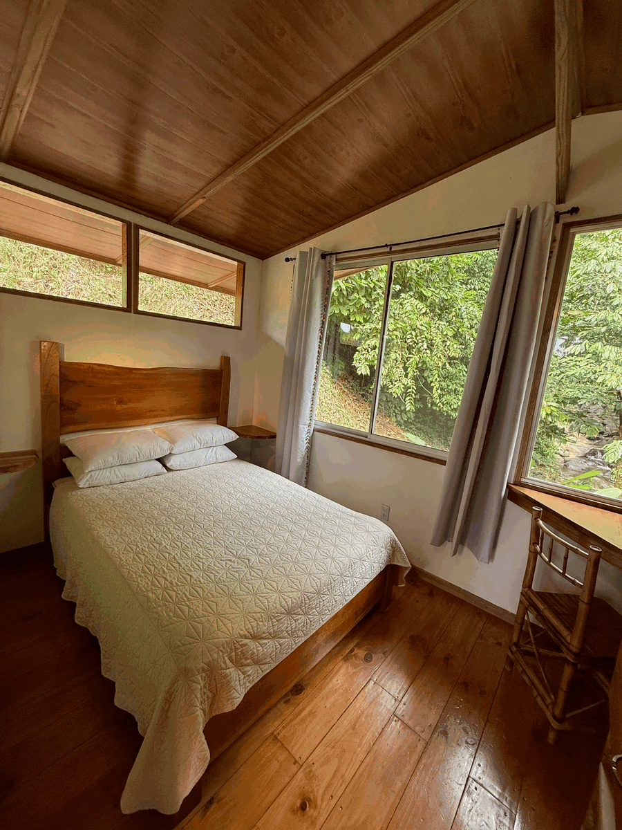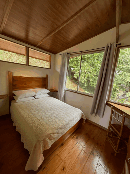 From the cabin near the river, you’ll be lulled to sleep by the soothing sounds of the flowing river, which maintains a steady flow year-round, even during the dry season.