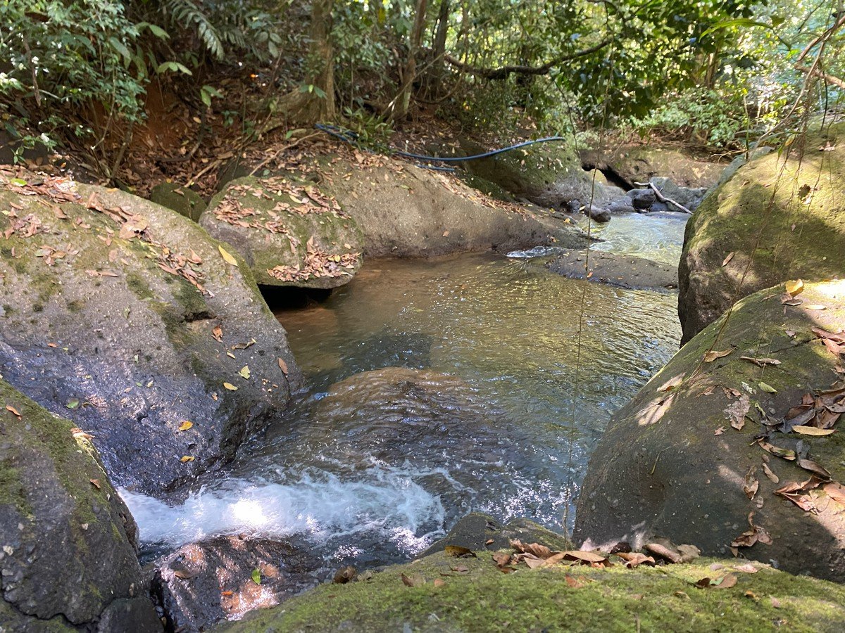 Regarding water, the property offers two water options. It currently uses two 5,000-liter tanks that collect rainwater, equipped with filtration systems for household use. There is also a connection to a nearby stream, which can be pumped into the tanks if desired, providing water supply for many days.