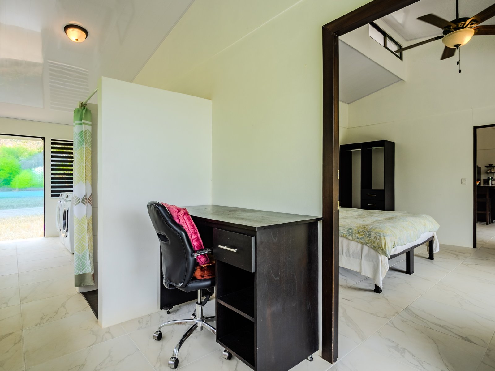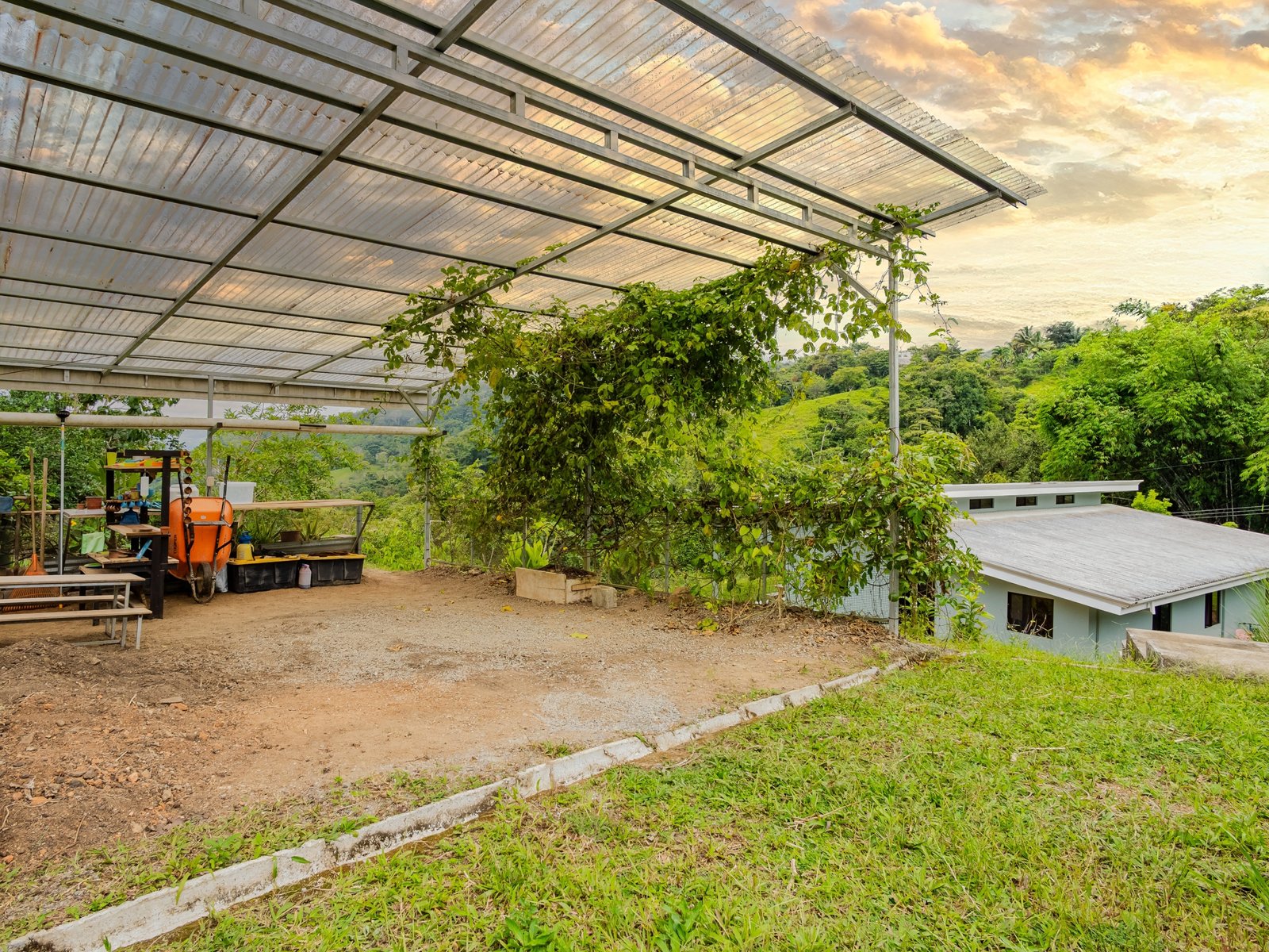 Nestled in the harmonious mountain village of Serenity Gardens at 2,500 feet, this 2.6-acre sanctuary offers the perfect year-round climate — warm but never hot, fresh but never cold. With private river access for swimming, pure spring drinking water, and abundant fruit trees, it is a haven for both comfort and self-sufficiency. A main home, guest casita, greenhouse/carport, and walking trails complete the setting, while the village provides low shared expenses, fresh farm deliveries, and a welcoming lifestyle — all just 45 minutes from the Pacific Coast, 1h20 to San Isidro, and 20 min to Pejibaye.