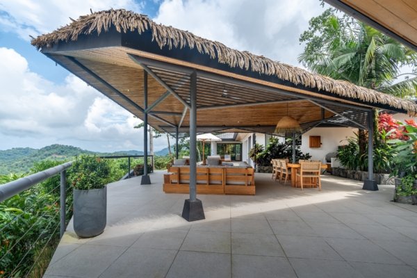 Welcome to Casa Amarilla, a stunning luxury estate perched on the front ridge of Tres Rios, just minutes from the coastal highway and the charming town of Ojochal. This extraordinary 5 bedroom, 4.5 bath private residence offers the perfect blend of upscale living and self-sufficient tranquility—with breathtaking panoramic views of both the Pacific Ocean and the lush valley and mountains beyond.