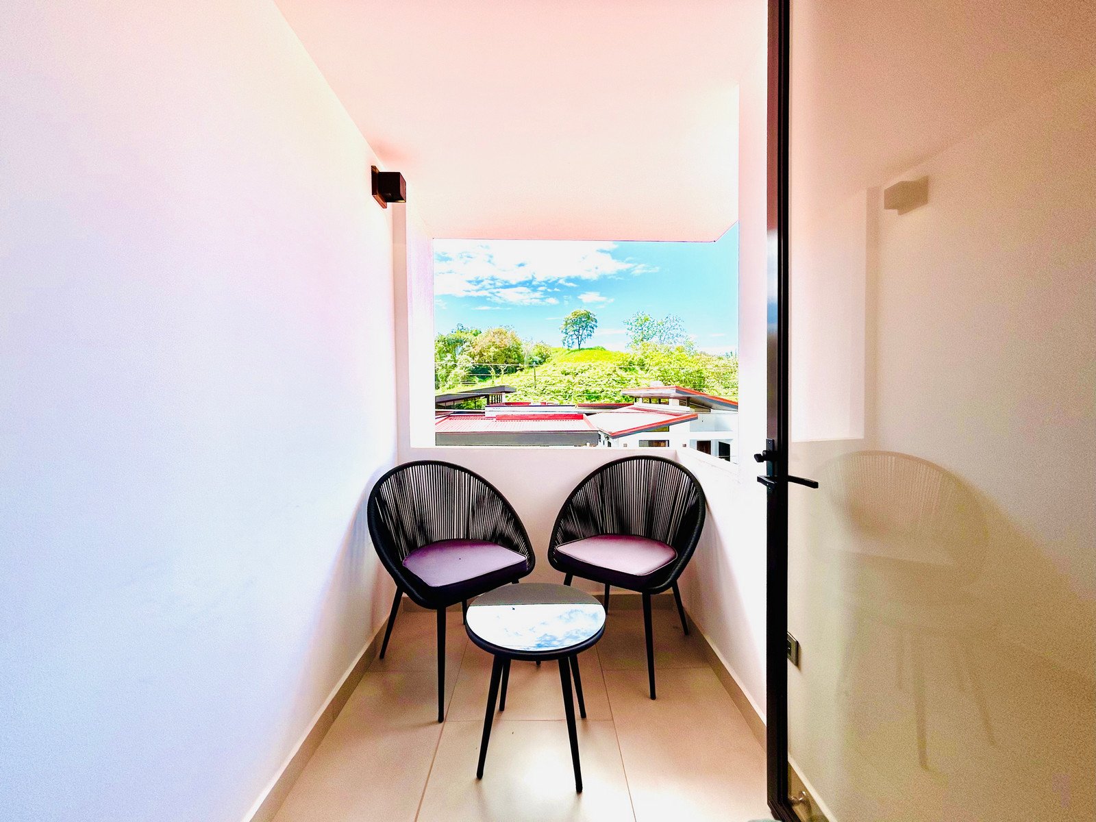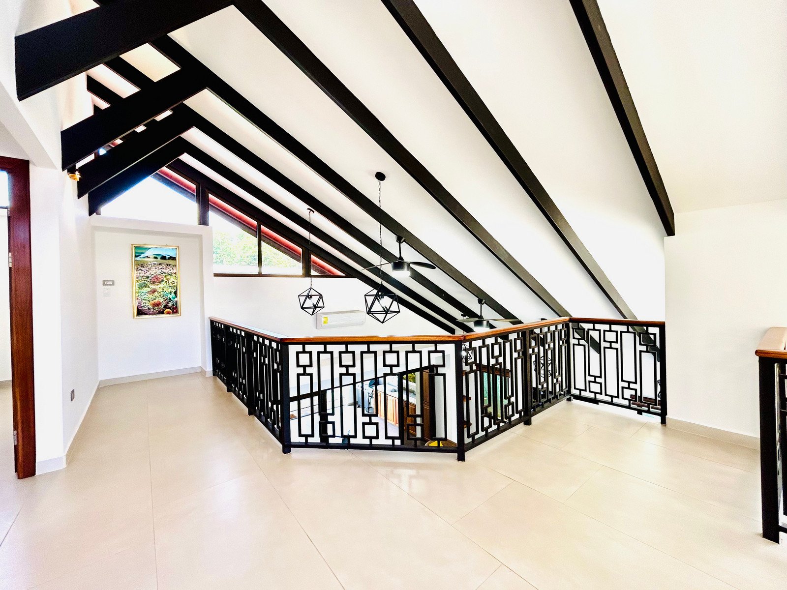 Upstairs you’ll find two comfortable guest bedrooms, a full bathroom, and a private balcony where you can relax and enjoy the surrounding neighborhood and mountain breezes. A stylish mezzanine overlooks the living area below, adding character and architectural detail.