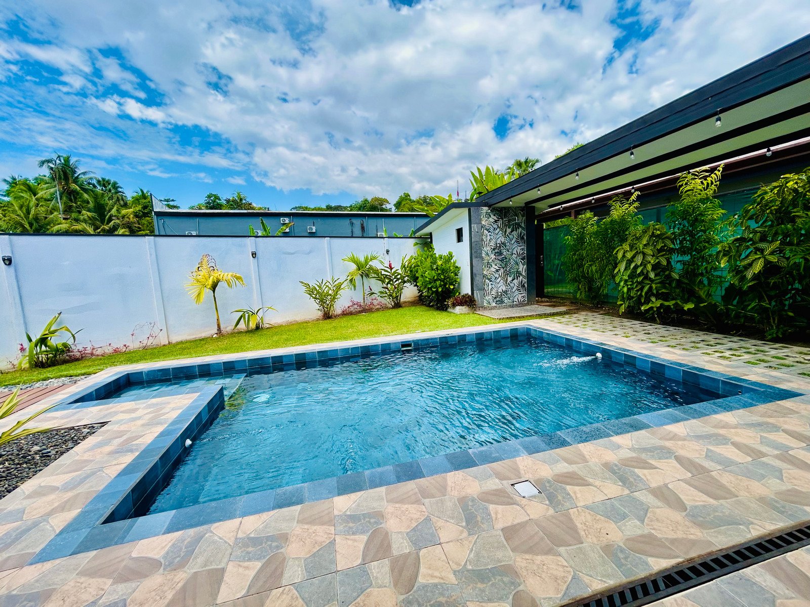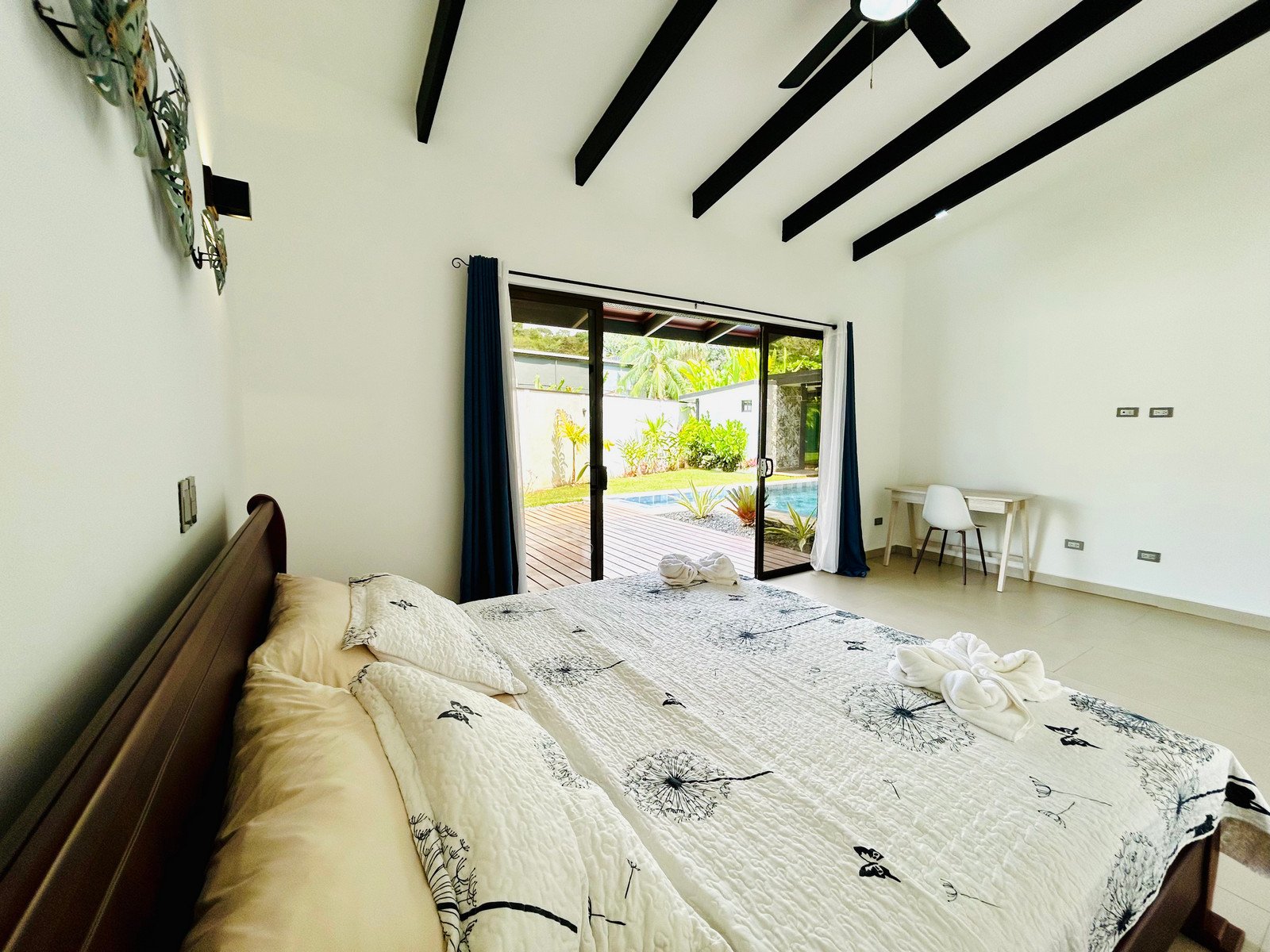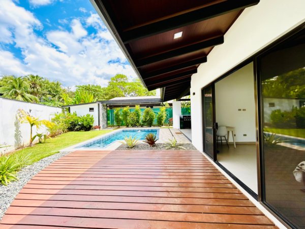 Outside, the property becomes your private oasis. A large swimming pool, covered terrace, and landscaped garden create the perfect environment for entertaining guests, relaxing with family, or enjoying Costa Rica’s year-round tropical climate.